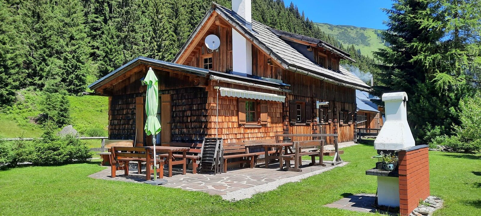 DONNERSBACHWALD. Gemütliche Selbstversorgerhütte auf der Mörsbachalm in 1300 m Seehöhe, mitten im Wandergebiet und in der Nähe vom Skigebiet Riesneralm (1,2 km zur Piste). Die Hütte hat 85 m² Wohnfläche mit gehobenem Standard, ist sehr gut ausgestattet, gemütlich eingerichtet und hat Platz für 8 Personen. Sie verfügt über eine Küche, Stube, Vorraum, 4 Zimmer, Bad, 2 WC, Infrarotkabine, Gartengrill uvm.