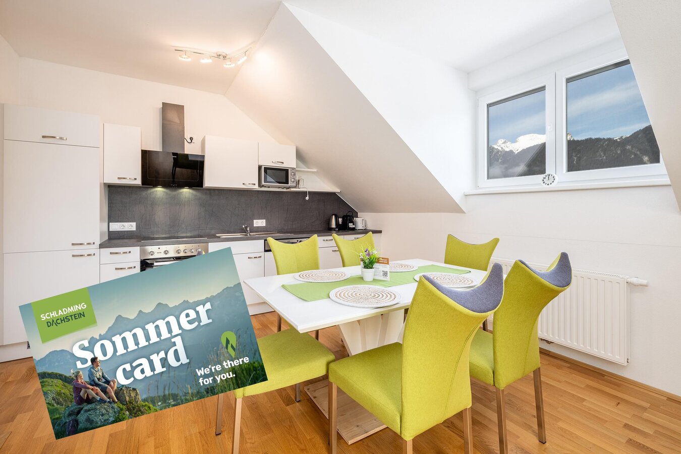 Das Apartment verfügt über ein modernes Badezimmer, ein separates WC sowie einen überdachten Autoabstellplatz direkt beim Haus. Ob Skiurlaub, Sommerfrische oder Kurztrip in die Berge – hier finden Sie den perfekten Ausgangspunkt für erholsame und aktive Tage im Ennstal.