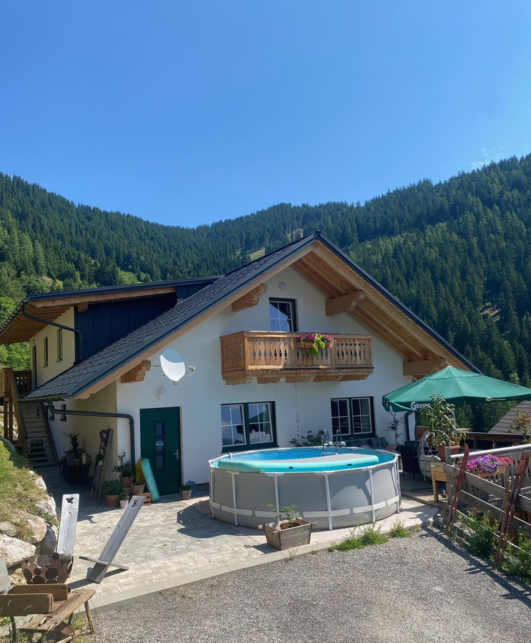 Genieße deinen Urlaub auf unserem Bergbauernhof "Schönwetter" auf 1250m Seehöhe in traumhafter Alleinlage auf die umliegenden Berglandschaften. Eine Auszeit nehmen aus dem hektischen Alltag-da bist du bei uns absolut richtig. Vielleicht mit einer Wanderung zum Gipfel des Gumpenecks? Diese Tour kannst du direkt von deiner Unterkunft aus starten. Vom Gumpeneck aus, hast du eine herrliche Aussicht über das Ennstal.Auf dem Nachhauseweg von deiner Tour, kannst du auch noch eine gemütliche Rast bei unserer Almhütte einlegen.Diese liegt direkt am Wanderweg.Lass deine Beine ein wenig ausruhen und genieße die Aussicht. Vielleicht mit einem leckeren Kaiserschmarren? Fast alle unsere Produkte stellen wir in unserer hofeigenen Metzgerei selbst her. Diese kannst du natürlich auch direkt am Hof erwerben.Z.b.Käsekrainer, Leberkäse, Streichwurst,Speck und noch andere Leckereien. In den Sommermonaten könnt ihr unsere Kühe und unsere zwei Schafe auf der Alm besuchen.