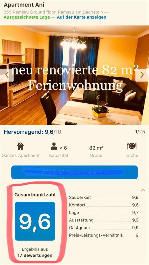 Herzlich willkommen in der Urlaubsregion Ramsau am Dachstein und in unserer neu renovierten Ferienwohnung für bis zu 6 Personen. Abseits der Hauptstraße und doch zentral gelegen, nur 200m vom WM Langlaufstadion und nur wenigen Gehminuten vom nächsten Lebensmittelgeschäft, Gasthäuser und Cafés entfernt. Das Appartement Ani empfängt Sie mit zwei gemütlichen Schlafzimmern, einem hellen Badezimmer mit Dusche und separatem WC, einer voll ausgestatteten Küche mit Induktionsfeld, Geschirrspülmaschine, Mikrowelle und Kaffeemaschine. Vom geräumigen Wohnzimmer mit einladender Essecke haben Sie direkten Zugang auf die sonnige Terrasse. Frühstück oder Abendessen bekommen Gäste der Ferienwohnung gerne auf Wunsch, 100m entfernten im Hotel Matschner. Ramsau am Dachstein bietet das ganze Jahr über ein umfangreiches Angebot an Spazier- und Winterwanderwegen entlang des 18km langen Hochplateaus, unterschiedlichste Nordic Walking und Laufstrecken, bis zu 220km Langlaufloipen sowie Skipisten für Anfänger und Familien. Verbringen Sie ihren Ramsau Urlaub auf 3 Ebenen im grünen Herz der Steiermark. Wir freuen uns auf Ihren baldigen Besuch!
