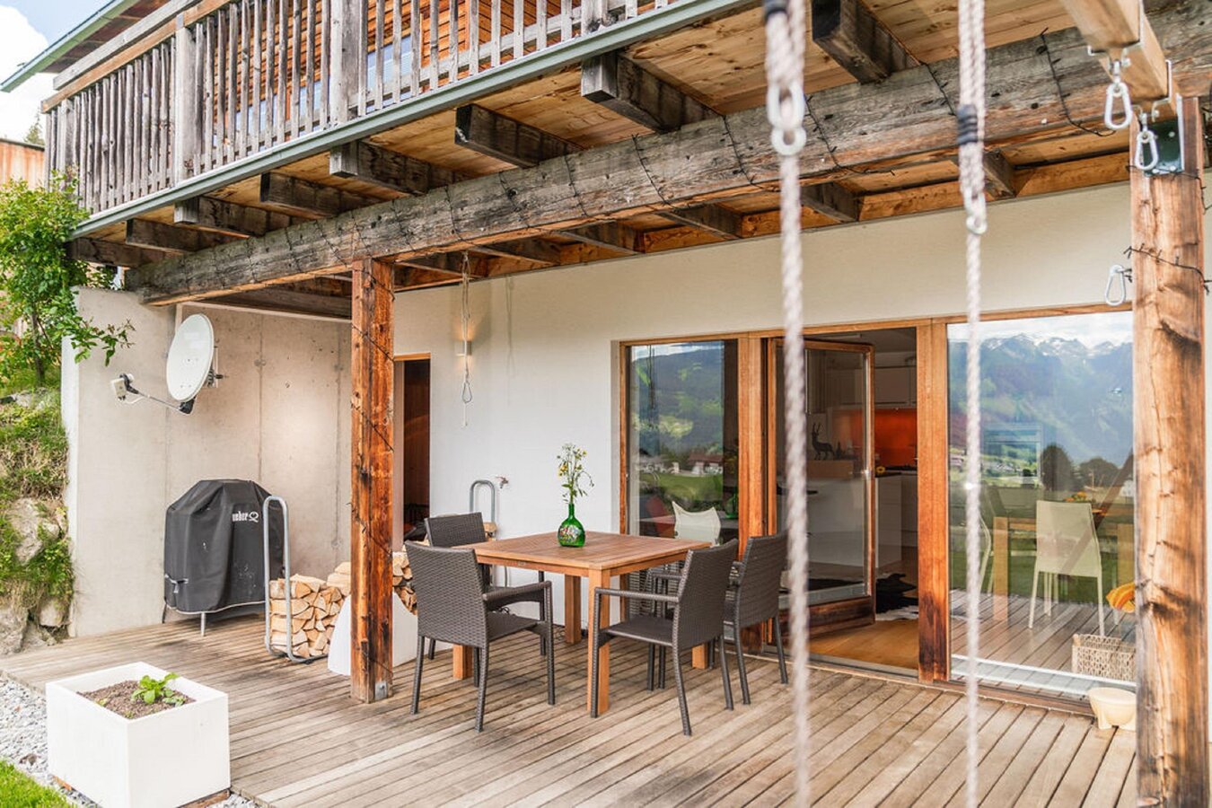 Die nicht einsehbare Südterrasse ist der ideale Ort, um die Sonne sowie die Aussicht in die Bergwelt bei einem Kaffee oder dem einen oder anderen Glaserl zu genießen.
