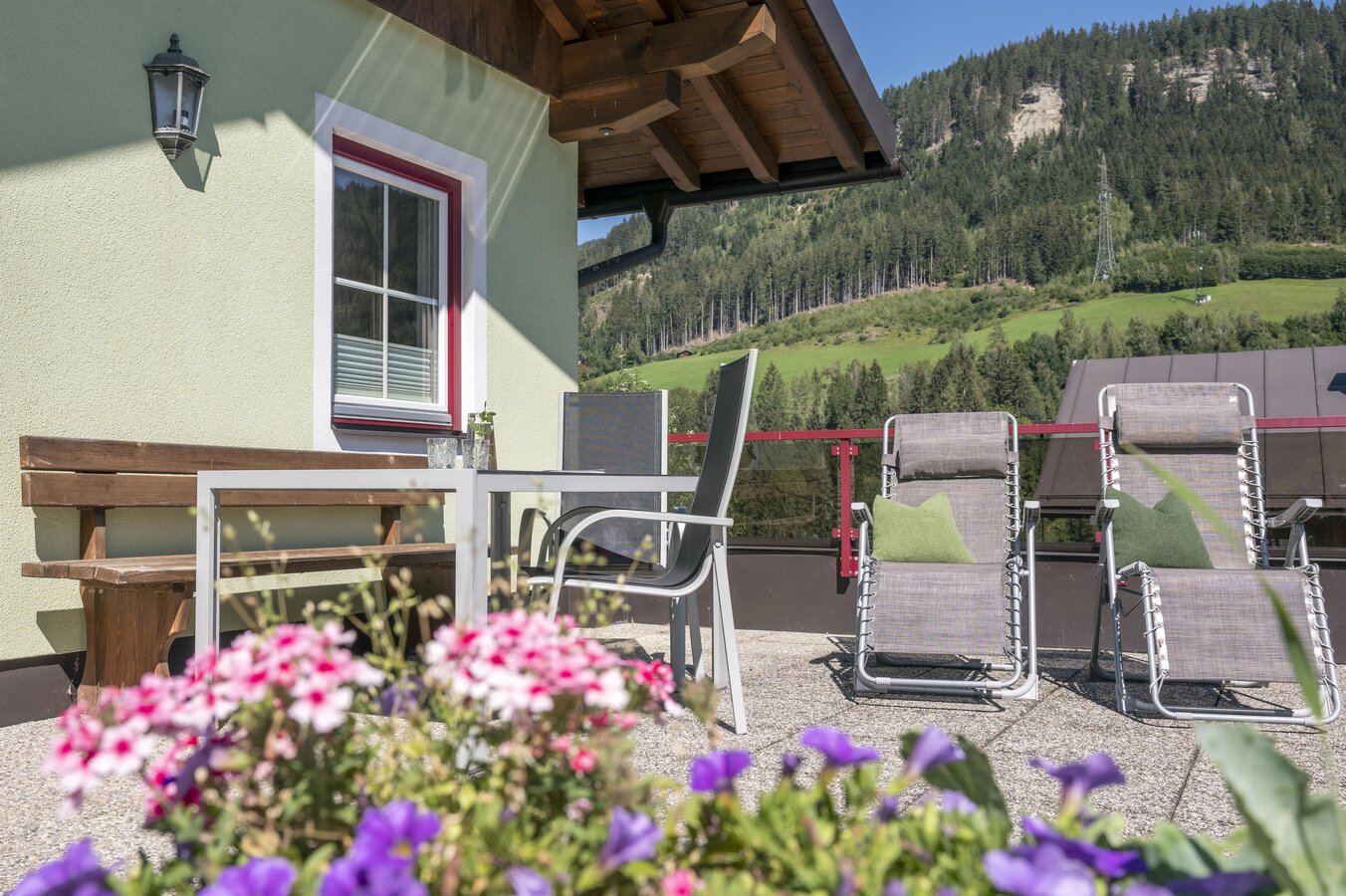 Wir bieten Ihnen eine 35m² große neue Ferienwohnung für 2 - 3 Personen mit großer Terrasse, Blick Richtung Schladming - Planai.