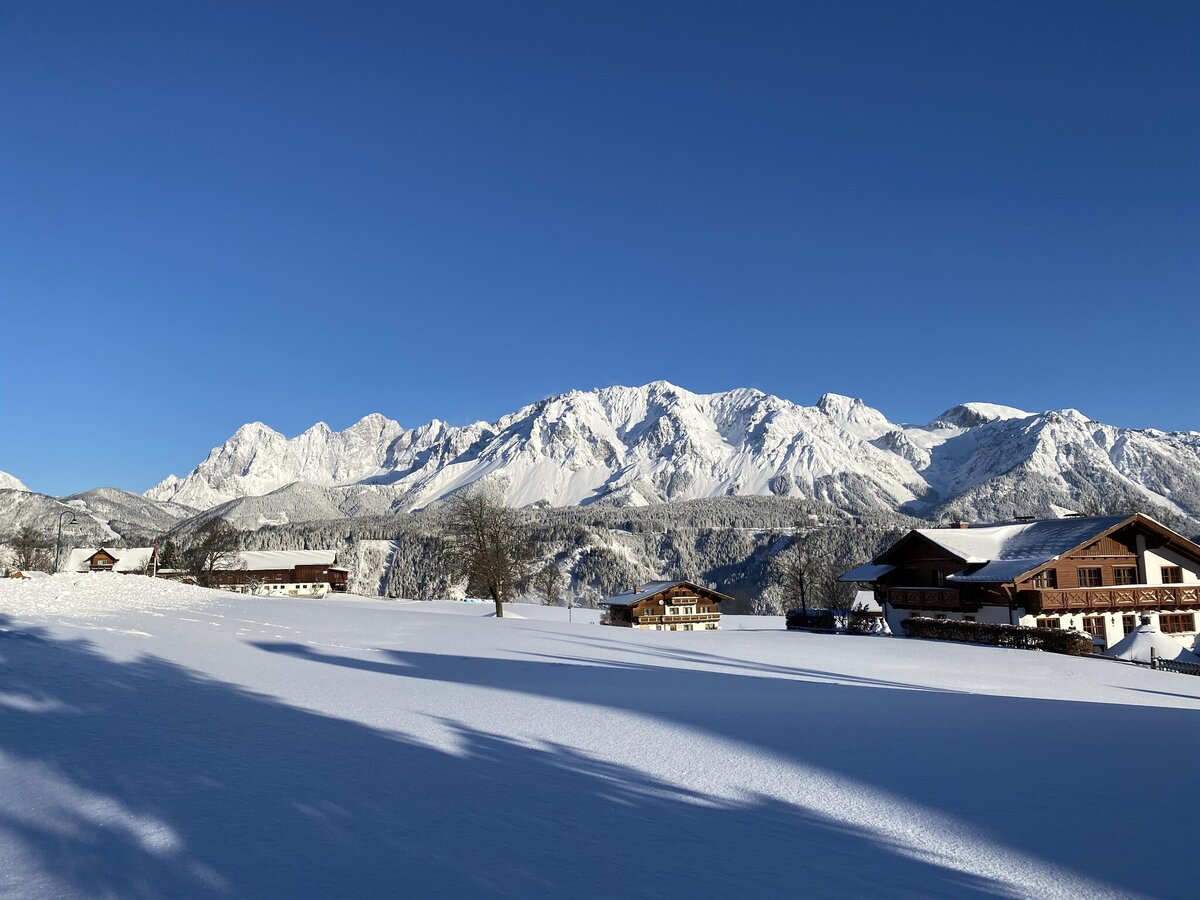 Wir vermieten ein gemütliches, sonniges Appartement für 4 Personen in einem Einfamilienhaus in absoluter Ruhelage am Rohrmooser Sonnenplateau. Zu den Pisten der Hochwurzen ist es im Winter nur ein kurzer Fußweg - wenn die Schneebedingungen stimmen, kann man bis vor die Haustür fahren. Im Sommer ist man in zwei Minuten an einem erfrischenden Badeteich und kann auch von hier aus viele Wanderungen starten. Vom Appartement hat man eine wunderschöne Aussicht über das Ennstal und Morgensonne. Im Winter können Sie mit den Skiern bis direkt vor die Haustür fahren. Die Unterkunft liegt nur 200 m vom Skilift "Obertalbahn" auf der Hochwurzen in Rohrmoos entfernt. Alternativ können Sie auch in zwei Gehminuten den Skibus erreichen. Im Sommer finden Sie bei uns den idealen Ausgangspunkt für Wander- und Mountainbike-Ausflüge, zum Beispiel zu den Touren der „Wilden Wasser“ oder den Klafferkessel.