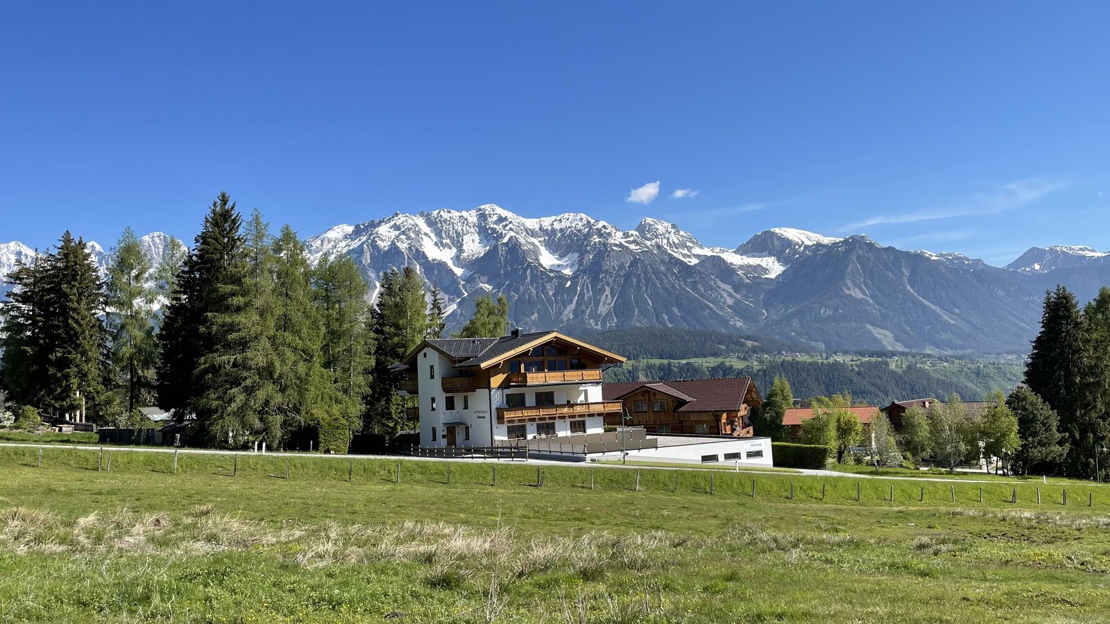 Tun Sie sich etwas Gutes, gönnen Sie sich einen Urlaub in einem unserer 4 geräumigen Komfort-Appartements für jeweils 2 bis 6 Personen. Direkt an der Skipiste, Wander- und Bikewegen, in unmittelbarer Nähe zur Talstation der Gipfelbahn Hochwurzen. Unsere Umgebung lädt zu Entdeckungsreisen an der frischen Luft ein. Spazieren Sie zum Einkaufen in das kleine Ortszentrum von Rohrmoos, zu unseren nahegelegenen Restaurants und Gasthäusern oder einfach mitten ins Wander- und Skiparadies. Oder fahren Sie umweltschonend mit dem Bus nach Schladming oder an einen Ausgangspunkt für herrliche Wanderungen. Für Golfer bieten wir 20 % Greenfee Ermäßigung im Golfclub Schladming-Dachstein an. Ihr Auto macht Urlaub in unserer Tiefgarage und mit dem hauseigenen Lift gelangen Sie direkt bis zu Ihrem Appartement. Entspannen und Genießen Sie Ihren Urlaub in Ihrem Appartement samt großzügiger Terrasse mit Blick auf unsere herrlichen Seitentäler der Schladminger Tauern, der Planai, ins Ennstal und dem Dachstein-Massiv.