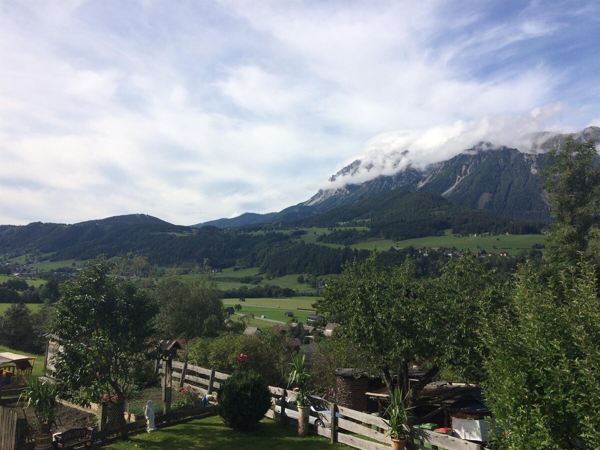 Auf 106 m² bietet unsere Ferienwohnung Platz für 2 bis 8 Personen. Neben der vollausgestatteten Küche mit Essecke und Wohnbereich (mit ausziehbarer Couch für 2 Personen) stehen noch 2 getrennte Schlafzimmer (für je 3 Personen) sowie ein Badezimmer mit Doppelwaschbecken, Dusche und WC zur Verfügung. Gratis W-Lan in der gesamten Ferienwohnung. Was unsere Gäste jedoch besonders genießen, ist der herrliche Ausblick in die heimische Bergwelt des Dachstein Massiv. Im Sommer können Sie so manchen lauen Abend auf unserer Terrasse ausklingen lassen. Für entspannenden Stunden ist zudem in unserem hauseigenen Jacuzzi gesorgt.