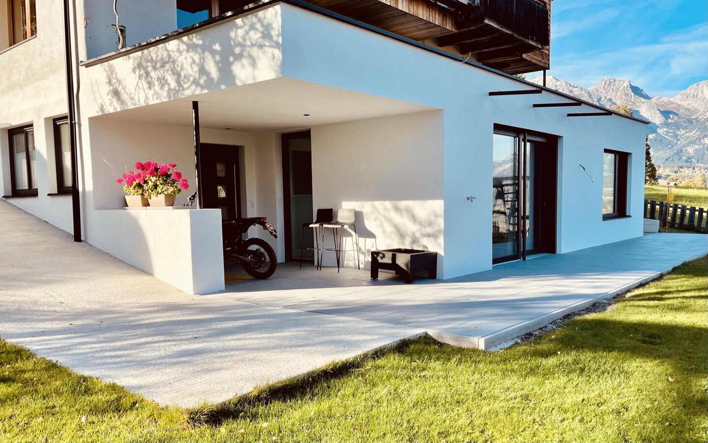 Unser AUSZEIT Appartement liegt in zentraler Lage auf dem sonnigen Hochplateau Rohrmoos auf einer Seehöhe von ca. 1000 Meter, mit traumhaftem Blick auf das mächtige Dachsteinmassiv, auf die umliegende Berglandschaft und die Täler der Schladminger Tauern.