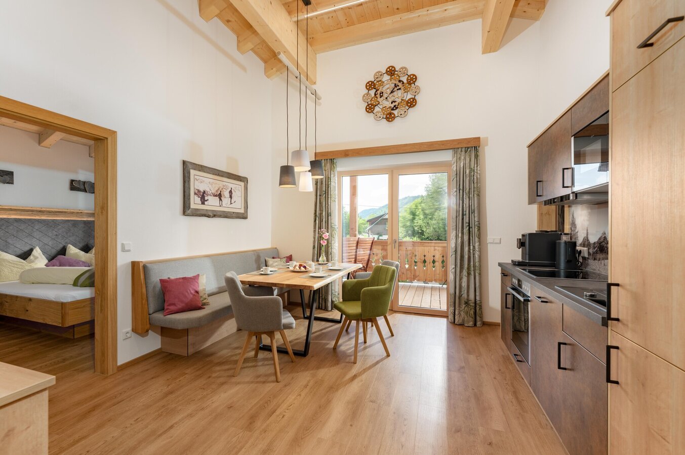Die neu errichteten Appartements im neuen ländlichen Stil bieten eine umfassende Ausstattung für einen erholsamen Urlaub hier im Ennstal. Die zwei Appartements im Obergeschoß sind mit einem großen Balkon ostseitig und einer Terrasse westseitig ausgestattet. Es erwartet Sie eine fantastische Kulisse unserer Bergwelt.