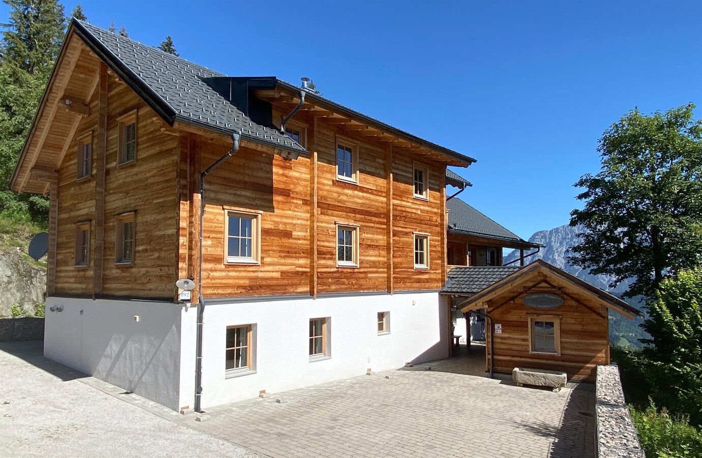 Im Erdgeschoss befindet sich ein etwa 50 qm großer Wellnessbereich mit finnischer Zirbenholz-Sauna, Zirbenholz-Wärmekabine, Ruheraum und großzügigem Duschbereich mit Schwalleimer. Gönnen Sie sich eine Auszeit nach einem erlebnisreichen Tag in der Ferienregion Schladming-Dachstein. Vor dem Haus lädt ein großer, teils überdachter Bereich mit Edelstahlgrill und unserer Hausgondel zu gemütlichen Grillabenden ein. Genießen Sie die atemberaubende Aussicht!