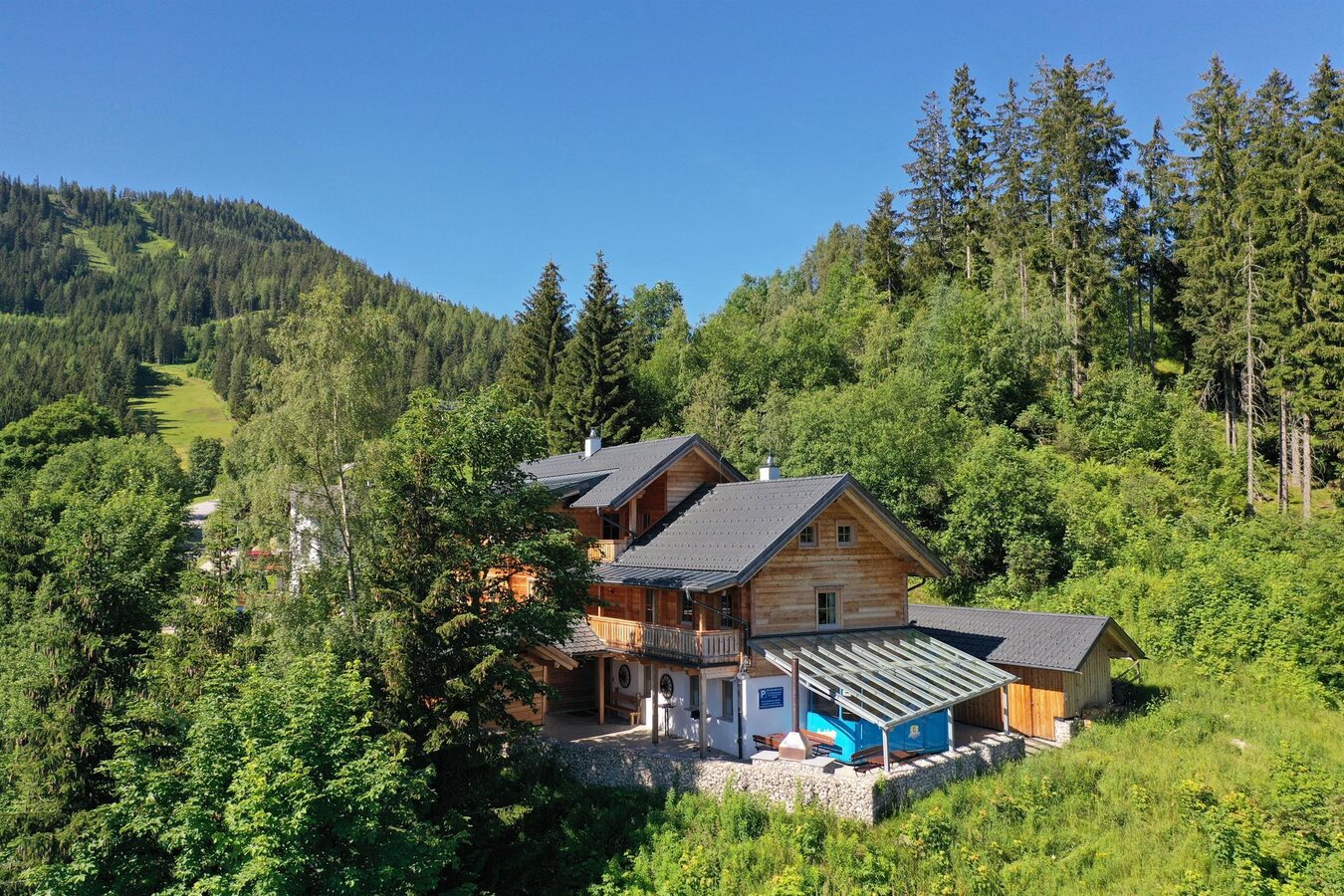 Auf einer Seehöhe von 1200m hoch über dem Ennstal traumhaft gelegen, bietet unsere luxuriöse Berghütte alles, was man sich für einen gelungenen Berg- oder Skiurlaub wünscht.