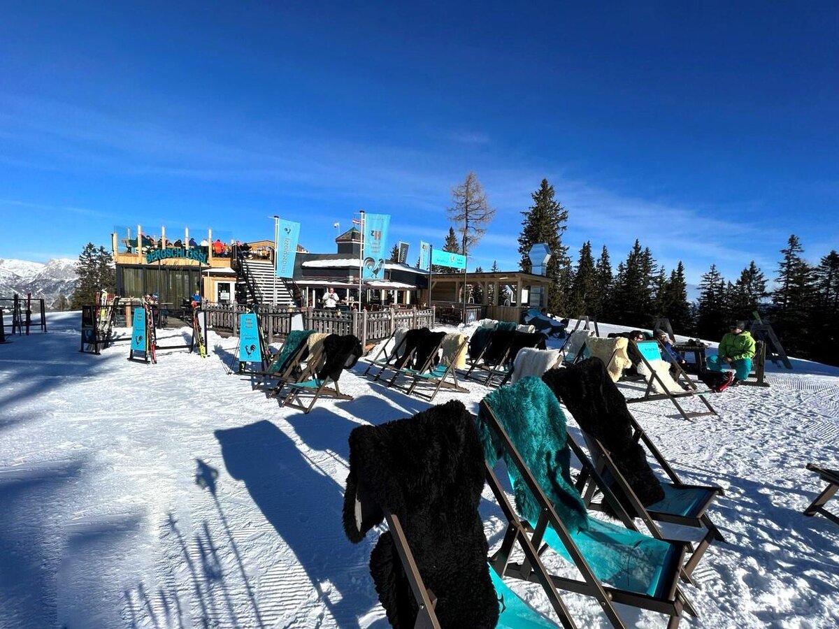 Zwischen den Abfahrten die Sonne auf dem Liegestuhl genießen und dabei noch die beliebte Osthang-Abfahrt vom Gipfel runter direkt im Blick haben? Klingt doch genial oder? Ist es unserer Meinung auch! Das sonnige Bergschlössl direkt an der Ausstiegsstelle des Höfi Express II ladet zum Genießen, Verweilen & Spaß haben ein.