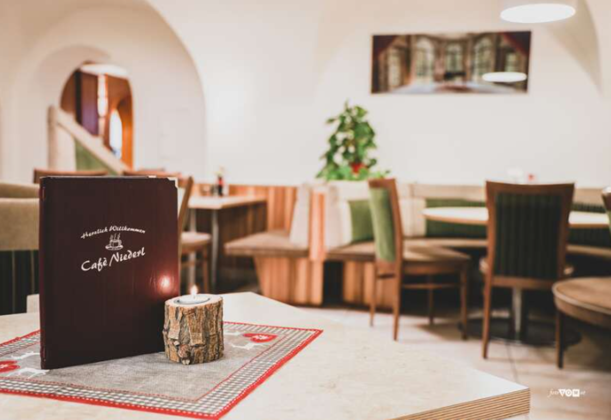 Im Café Niederl trifft gemütliches Ambiente auf kulinarische Vielfalt. Starten Sie den Tag mit einem frischen Frühstück, genießen Sie am Nachmittag hausgemachte Kuchen und Mehlspeisen oder gönnen Sie sich zwischendurch einen aromatischen Kaffee aus besten Bohnen.