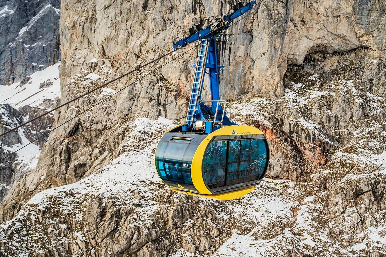 Hinaufschweben in eine Welt fernab des Alltags und dabei das Gebirgsmassiv des höchsten Berges der Steiermark so nah wie nie zuvor erleben - genau das kann man mit der rundum-verglasten Dachstein Panoramagondel!