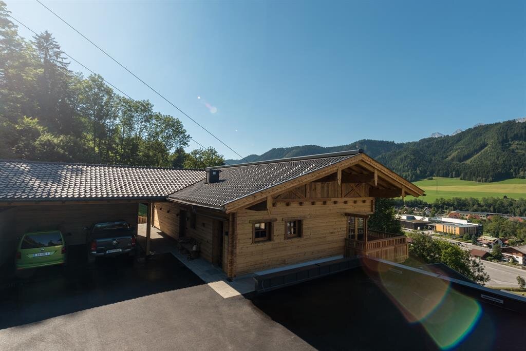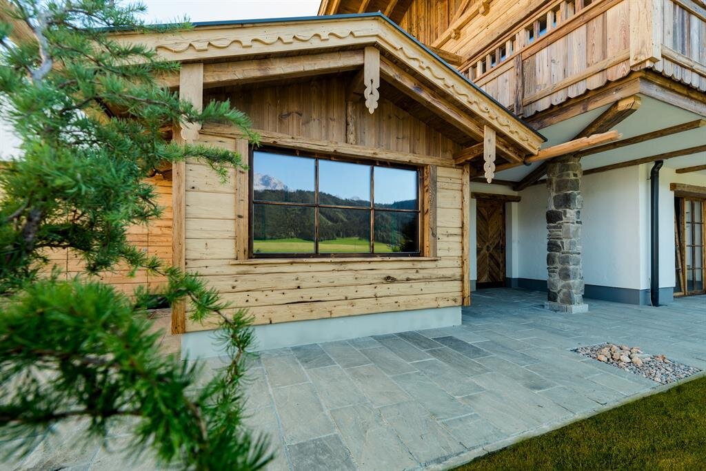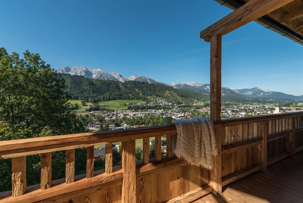Ein Urlaub direkt an der Skipiste - Ein Urlaub voll Bewegung, frischer Luft, Entspannung, Gemütlichkeit, Style und Charme. Das verspricht unser Chalet mit den zwei Suiten für Ihr Ski-in & Ski-out Erlebnis und die unzähligen Sommeraktivitäten, die Sie vor der Haustüre in Schladming erwarten. Uriger Alpenstil meets Rocky Mountains Schick Unsere zwei Suiten verwöhnen Sie mit einem Stilmix aus Österreich und Rocky Mountains. Urig und traditionell, bodenständig und natürlich wie es in Österreich gelebt und geliebt wird. Sowie lässig, leicht, trendy und gemütlich ganz à la Rocky Mountains für den passenden Touch dazwischen. Naturmaterialien wie Holz und Stein geben im gesamten Haus den Ton an. Wohnkomfort auf Ihre Bedürfnisse zugeschnitten Beide Wohnungen verfügen über 2 Schlafzimmer mit 2 Bädern, die jedoch umgestaltet werden können, wenn nur 2 Personen die Suite bewohnen. Dann werden aus den 2 Bädern ein großes Badeparadies und aus dem 2. Schlafzimmer ein gemütliches Lesezimmer. Die Außensaunen aus Altholz runden den Wohlfühlurlaub perfekt ab und sorgen für Regeneration und Wohlbefinden. Schmankerln für´s Frühstück Unsere Region liegt uns am Herzen, daher fertigen wir in unserer Landwirtschaft in der Ramsau hauseigene Produkte an. Für Ihr Frühstück können Sie die Produkte direkt bei uns im Haus erwerben. Die Milch unserer Kühe wird zu Butter, Topfen und Frischkäse verarbeitet. Zusätzlich bieten wir selbstgemachte Marmeladen für Ihr Butterbrot am Morgen an. Weitere Leistungen die wir gerne für Sie arrangieren: - Abendessen im Chalet - Massagen - Pferdeschlitten- kutschenfahrten Kostenlos steht Ihnen zur Verfügung: - Strom/Heizung - Überdachter Parkplatz - Bademäntel/-Hand und Geschirrtücher - Willkommenskaffee und -kuchen in der Steirerstub'n im Ramsbergerhof Ramsau -WLan