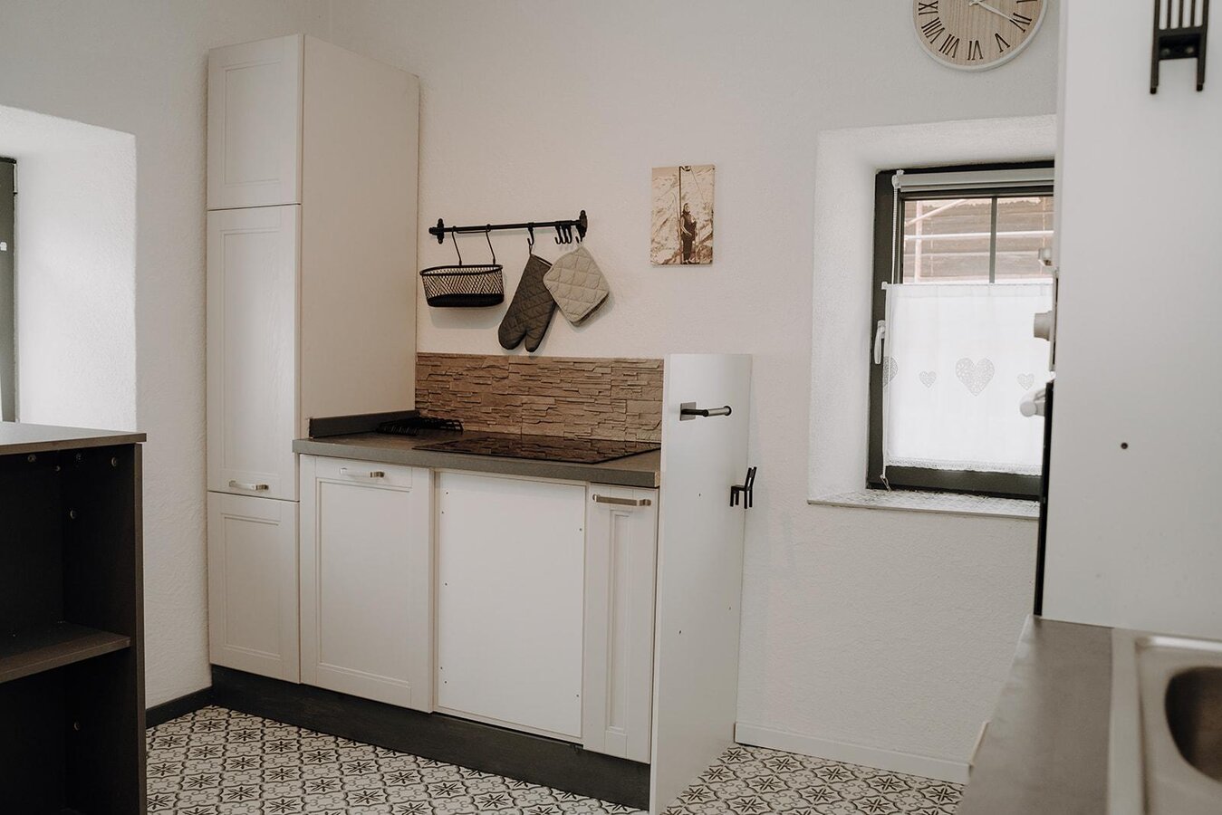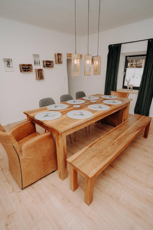 Im Erdgeschoss befinden sich eine große Stube mit vollausgestatteter Küche, Wohnzimmer, Badezimmer und zwei separaten WC's. Im 1. Stock befinden sich zwei Doppelzimmer, zwei Einzelzimmer und ein Badezimmer mit Dusche und WC.