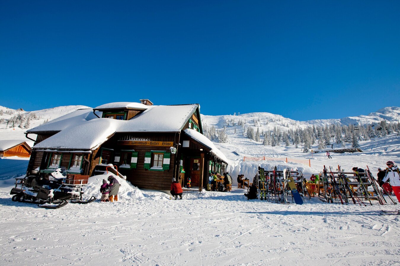 Zwei gemütliche Gasträume und eine Sonnenterrasse - das ist die Dornbuschhütte mitten im Skigebiet Planneralm. Hier schwingst Du mit Freude ab um Dich in der wohlig warmen Stube aufzuwärmen. Entweder nahe am Ofen oder auch mit einem originellen Getränk wie der "Schneehexe". Oder vielleicht auch mit beidem, denn doppelt hält ja bekanntlich am besten.