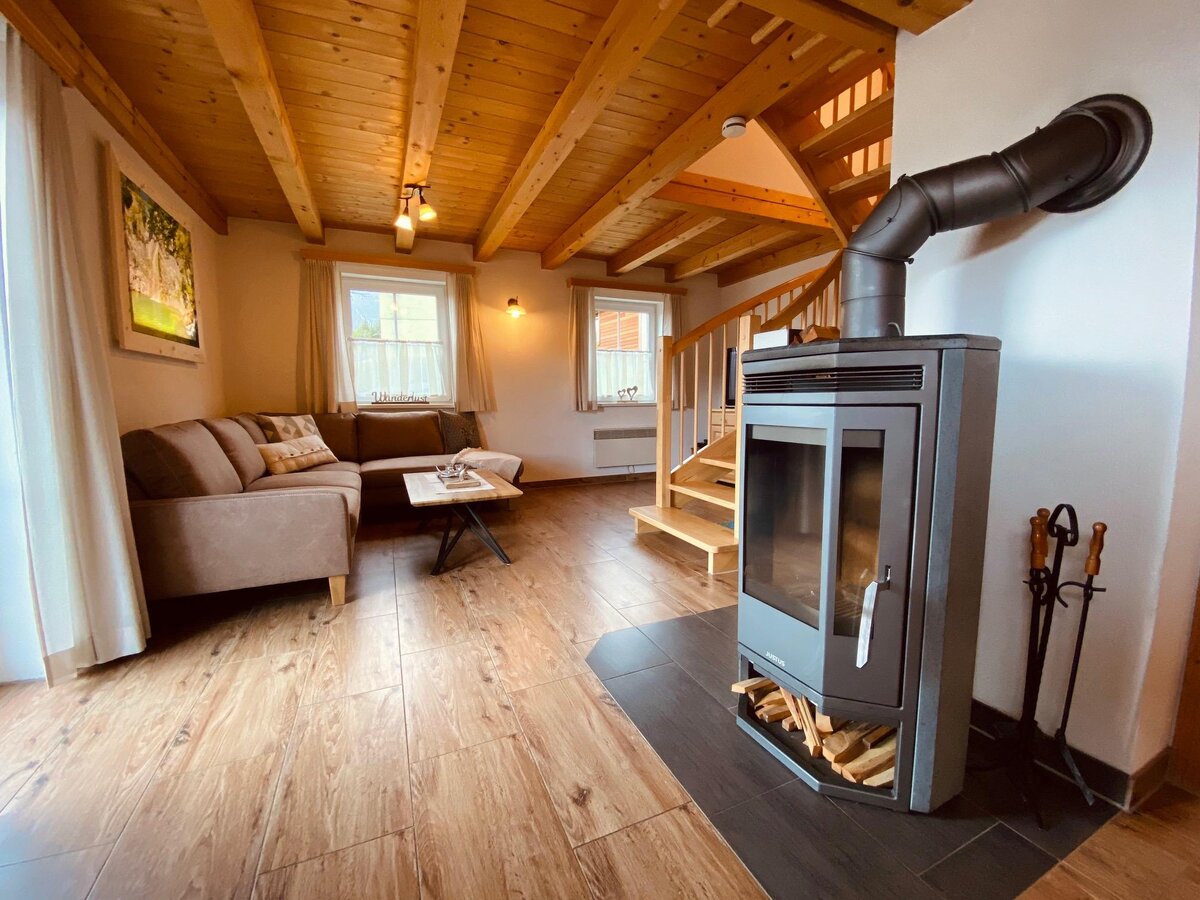 Unser liebevoll eingerichtetes Ferienhaushaus Stiegler bietet Platz für bis zu 4 Personen und verfügt über 2 Schlafräume, Bad/WC, Dusche, einen schönen, offenen Wohnraum mit einer voll ausgestatteten Küche (Kühlschrank, Geschirrspüler, Backofen, Kaffeemaschine, Wasserkocher, Mixer), einer große Ledercouch, SAT- TV, Gratis W-LAN, einem Kamin und einer kleinen Kinderspielecke.
