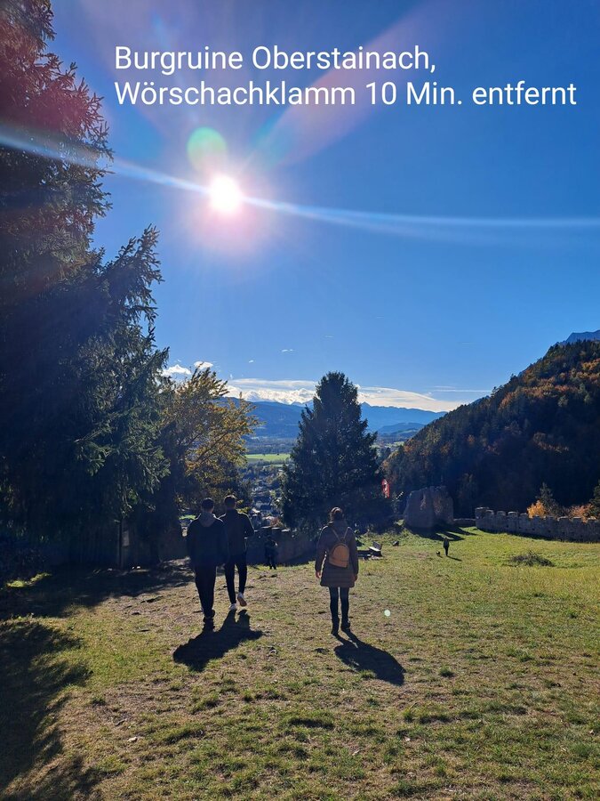 Im Sommer ist die Wörschachklamm in nur 5 Fahrminuten erreichbar. Dort kann man eine schöne Runde entlang der Wasserfälle unternehmen und anschließend von der Ruine die Aussicht genießen. Auch Pürgg, das „Kripperl der Steiermark“, ist einen Besuch wert.