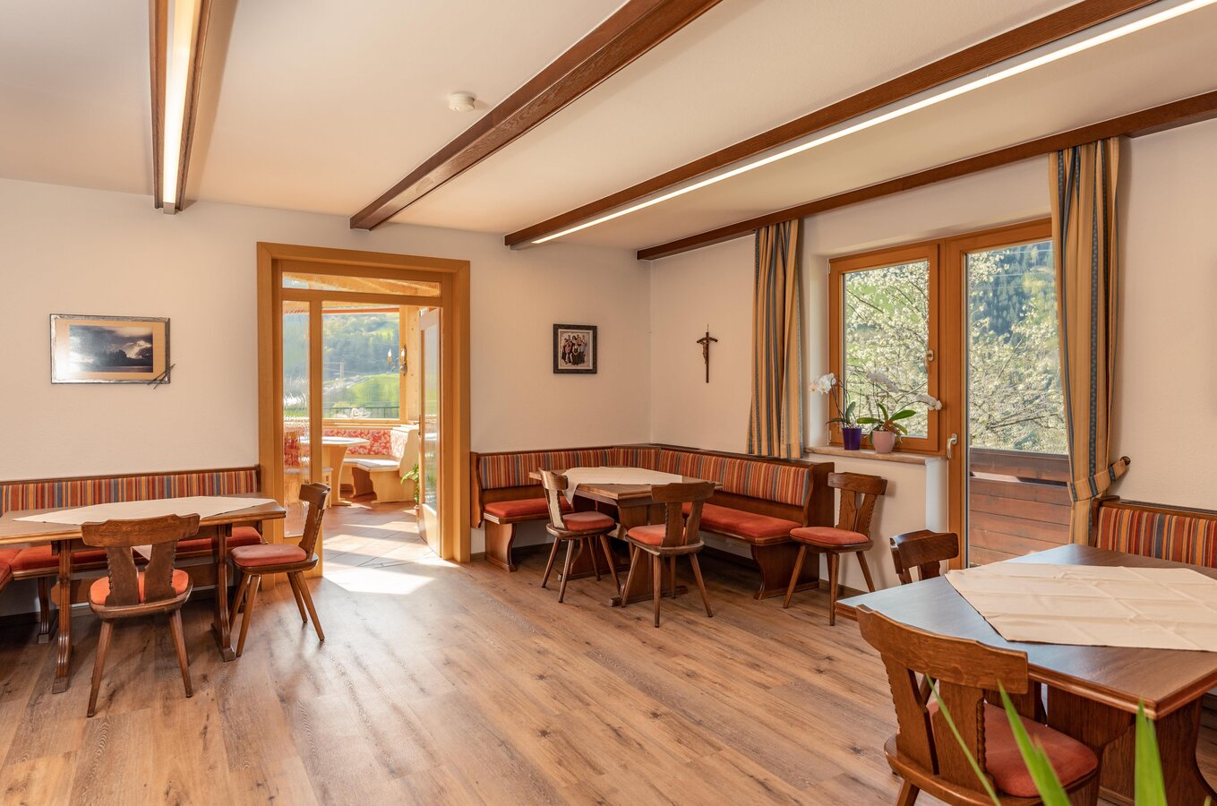 Unser Gästehaus befindet sich in sonniger und gemütlicher Lage in Waldesnähe mit Blick auf Schladming und den umliegenden Bergen der Schladminger Tauern. Alle Zimmer sind mit DU/WC,Haarfön,TV mit Sat, und Balkon ausgestattet. Unser 4-Raum-Appartement für 4 bis 6 Personen ist mit TV/Balkon, Du/2 WC, Badewanne ausgestattet . Im Sommer steht ihnen ein Griller mit Terasse und Sitzmöglichkeiten zur Verfügung. Gästekühlschrank vorhanden! Unser Wintergarten lädt zum gemütlichen Zusammensitzen ein. Wander und Skibus 100 m vor dem Haus zum Nulltarif.