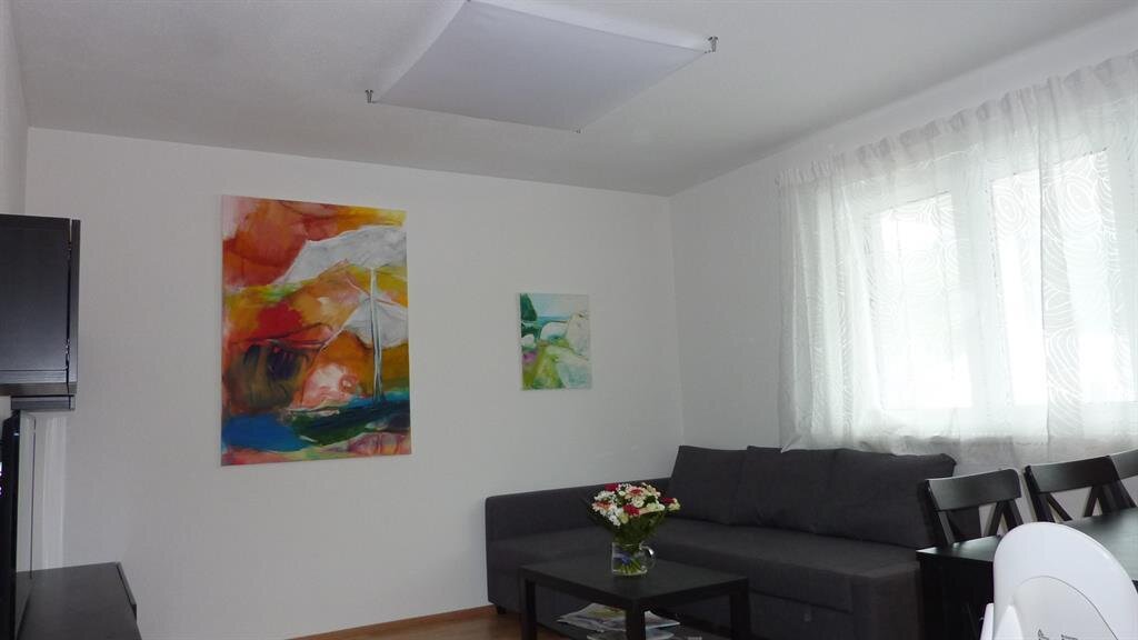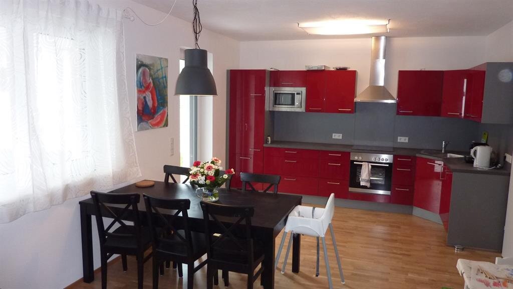 Die „Große Familienwohnung“ liegt am Ortsrand von Aich in der Region Schladming –Dachstein in sonniger Lage in einer neu gebauten Wohnsiedlung. In nur 5 Autominuten erreichen Sie den Ersteinstieg der 4-Berg-Skischaukel, den Hauser Kaibling. Hier erwartet Sie eine gemütliche Familienwohnung für 2-6 Personen in niveauvoller Ausstattung mit 2 getrennten Schlafzimmern (eines mit Doppelbett und Gitterbett, eines mit Doppelbett und Stockbett), 1 Bad mit Dusche/WC und einem separatem WC.