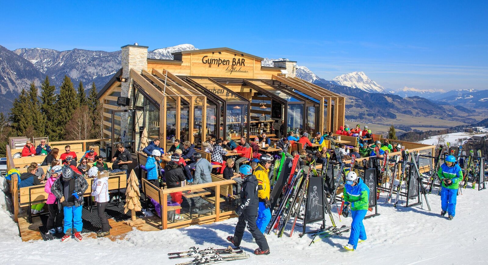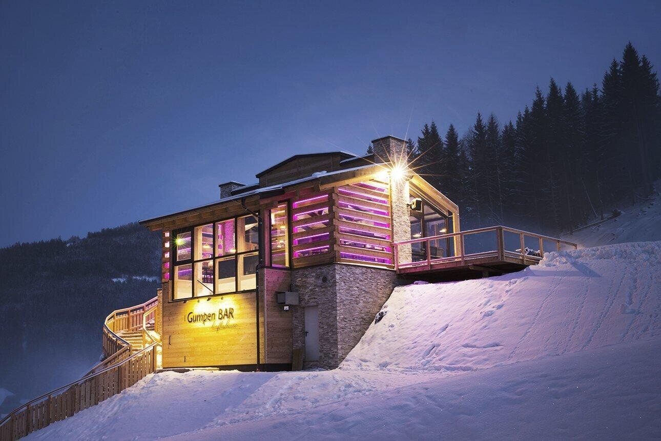 Unmittelbar neben der Talstation Höfi-Express I, nur wenige Meter neben dem wunderschönen Natur- und Wellnesshotel Höflehner ****S, gibt es eine weitere urig moderne Skihütte - die Gumpen BAR!