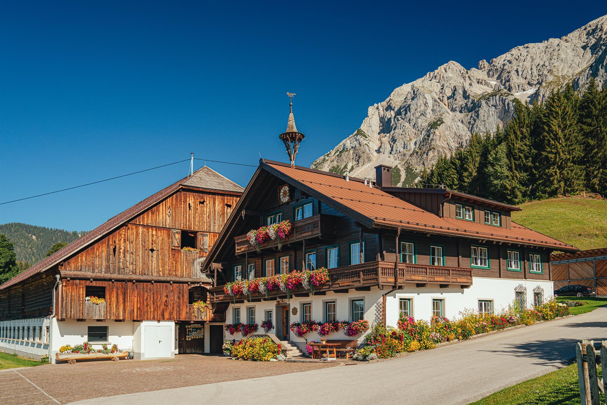 Herzlich Willkommen im Haus Mayerhofer im wunderschönen Ramsau am Dachstein. Unser traditionsreicher Bauernhof liegt ruhig und sonnig nur 5 Gehminuten vom Zentrum von Ramsau am Dachstein entfernt.