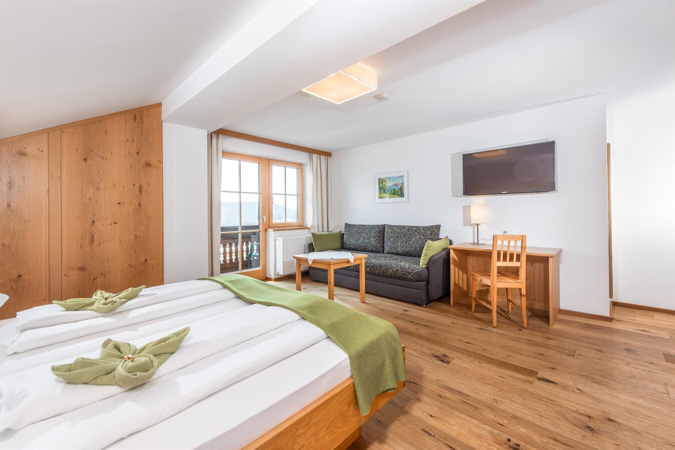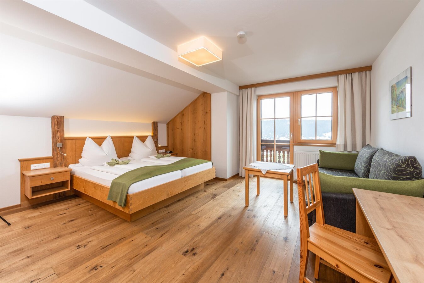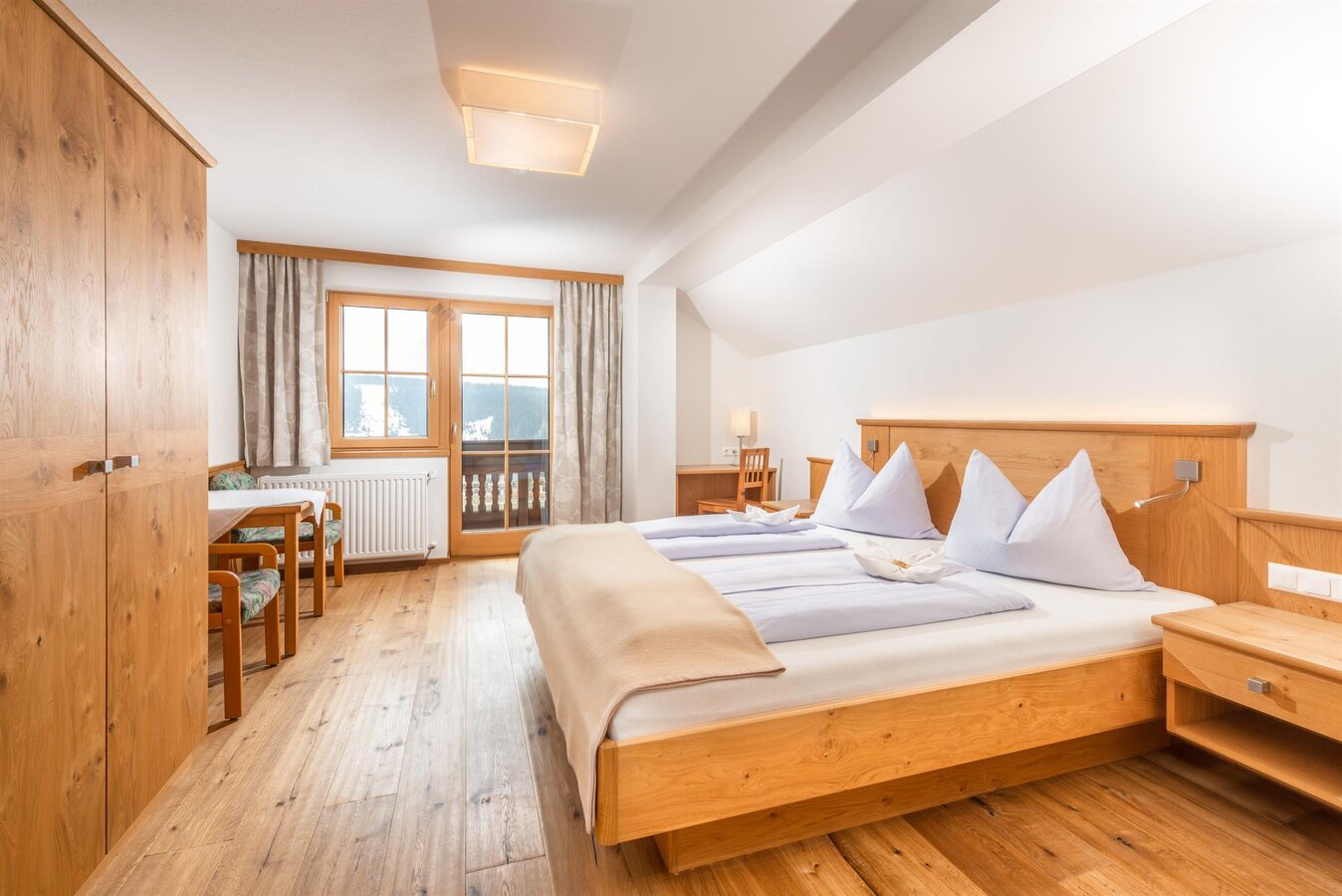 Auf unserem Bauernhof bieten wir unseren Gästen 5 gemütliche und geräumige Gästezimmer eingerichtet mit hellen Eichenholz Möbeln und Naturholzböden im modernen Landhausstil, SAT-TV und einen sonnigen Balkon mit herrlichem Ausblick auf die Bergwelt. Liebevolle Details schaffen eine Wohlfühlatmosphäre für die ganze Familie. Das WLAN nutzen Sie im gesamten Haus Mayerhofer natürlich kostenlos. Morgens starten Sie mit unserem reichhaltigen Frühstücksbuffet gestärkt in einen erlebnisreichen Urlaubstag. Hier verwöhnen wir Sie mit Produkten aus der eigenen Küche, Garten und Landwirtschaft.