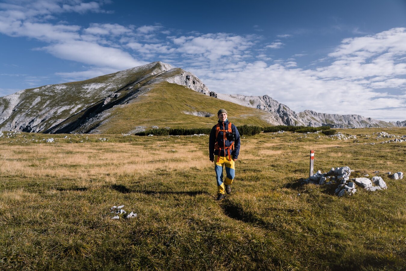 DE GEHT EINI IN DIE WADLN. Diese alpine Tour ist nur für geübte Berggeher. Erfahrung, Orientierung und Ausdauer sind ein Muss. Dafür ist der 360°-Rundumblick über das Tote Gebirge das volle Gegenteil von karg.