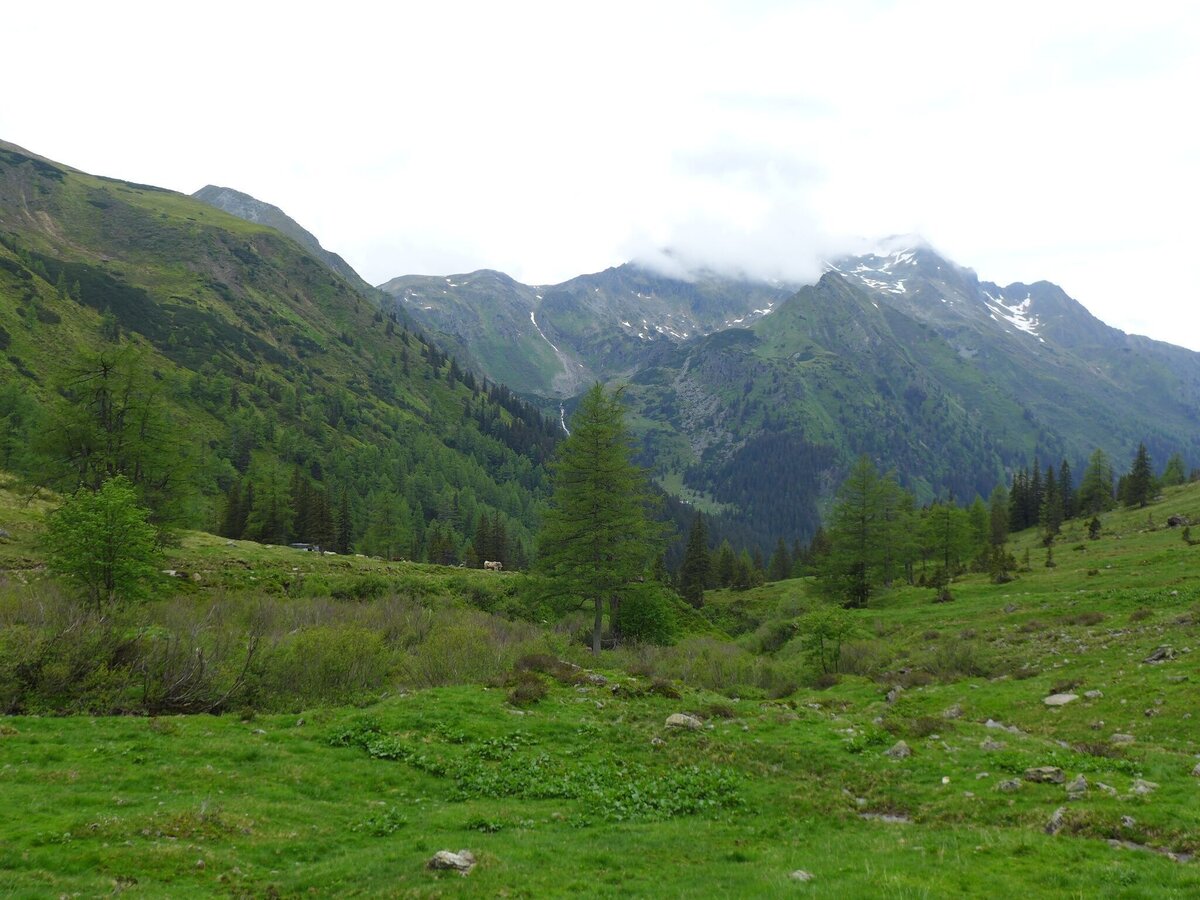 Von den Almböden bei der Hansenalm an der Passstraße sieht man bereits den formschönen Gipfel des Hochstubofen, der den Talschluss beherrscht. Im Sommer findet man hier die purpurfarbenen Blüten des Pannonischen Enzian.