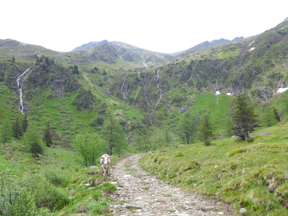Der Abstieg führt wieder gleich zurück bis zum Almweg. Hier links abbiegen und dem Almweg bis zum Ausgangspunkt bei der Winkleralmkehre folgen.