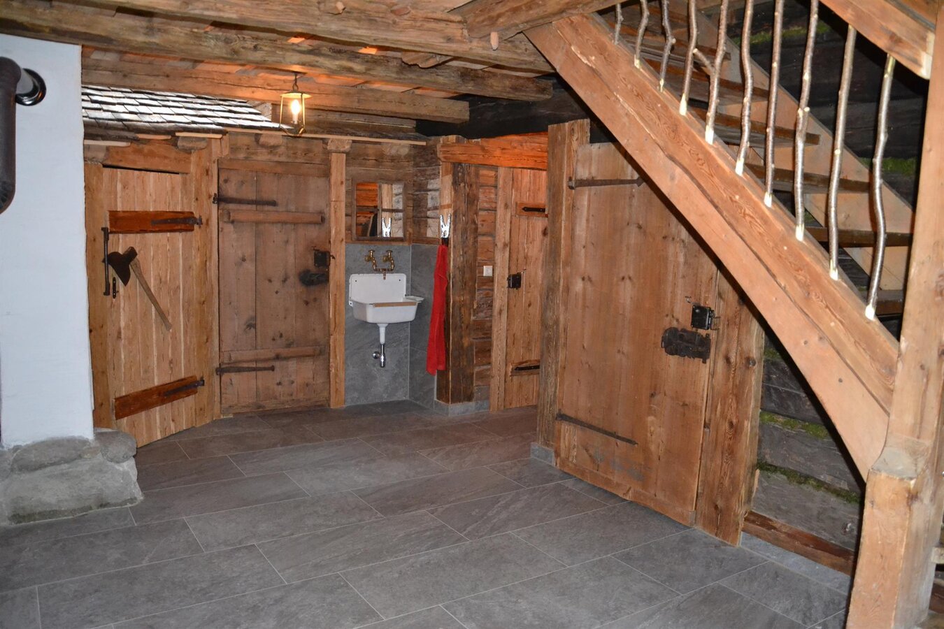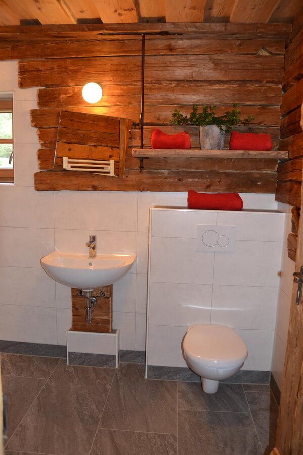 Im Erdgeschoß befindet sich eine urige Stube mit Holzofen für gemütliche Stunden, eine komplett ausgestattete Küche mit E-Herd, Ceranfeld, Kühlschrank mit Gefrierfach, Filter Kaffeemaschine - Teekocher, Geschirrspüler, ausreichend Geschirr und Küchenutensilien, ein Schlafzimmer mit Doppelbett, sowie ein WC und 2 Bäder. Für behagliche Wärme sorgt eine Fußbodenheizung.