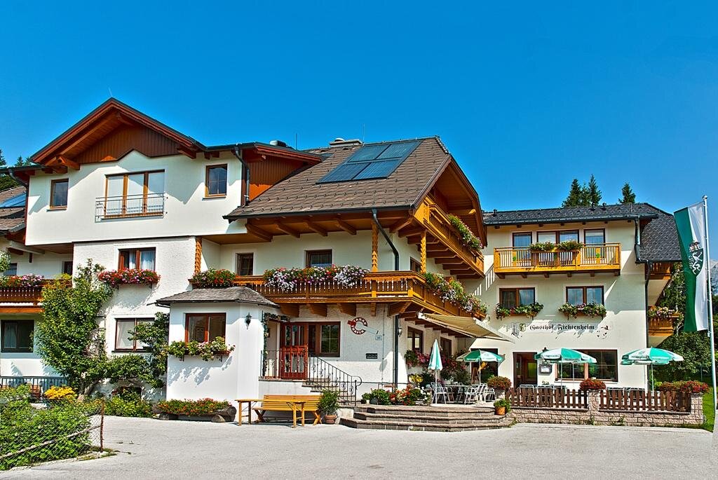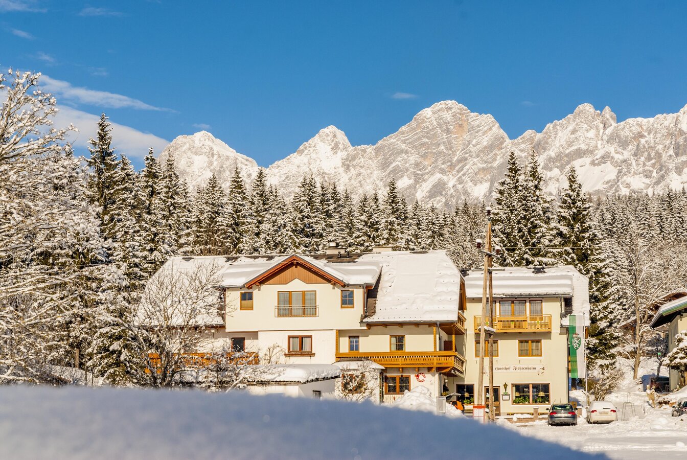 Wir begrüßen Sie herzlich im Alpengasthof Fichtenheim im Ortsteil Vorberg in Ramsau am Dachstein! Lassen Sie am Fuße des Dachsteins Ihre Seele baumeln und genießen Sie Ihren Urlaub in familiärer Atmosphäre. Unser Alpengasthof Fichtenheim liegt am Waldrand mit herrlicher Aussicht auf das Dachsteinmassiv sowie in die Schladminger Tauern. Die Lage bietet einen hervorragenden Ausgangspunkt für Wanderungen im Sommer und Langlauferlebnis im Winter. Wanderwege und Loipen führen direkt am Haus vorbei. Die großzügigen, rauchfreien Komfortzimmer und die Suite sind mit Dusche, WC, Sat-TV, W-Lan modern ausgestattet und versprechen ein behagliches Ambiente für gemütliche Stunden und erholsamen Schlaf. Fast alle Zimmer verfügen über einen Balkon und lassen Sie somit die umliegende Bergwelt intensiv erleben. Die südlichen Zimmer bieten einen herrlichen Ausblick auf die Schladminger- und Niederen-Tauern, von Norden lacht Ihnen der Dachstein ins Zimmer. Ein Morgen im Fichtenheim beginnt kraftvoll mit einem reichhaltigen Frühstücksbuffet, abends haben Sie die Wahl aus verschiedenen 3-Gang Menüs mit Salatbuffet. Wir legen Wert auf Qualität und Vielfalt. Mit einer kräftigen Portion Herz und Engagement verwöhnen wir Sie in unserem Restaurant mit rustikalem Flair mit Spezialitäten aus der österreichischen und insbesondere steirischen Küche. An lauen Ramsauer Sommerabenden veranstalten wir für unsere Gäste gemütliche Grillabende mit herrlich duftenden Grillkoteletts und fangfrischen Forellen. Dazu servieren wir kühles Bier oder ausgewählte Weine aus unserem Weinkeller. Damit bei Ihren Kindern keine Langeweile aufkommt, bieten wir direkt beim Haus einen großen Spiel- und Erlebnisplatz mit Slakline, Trampolin, Klettergerüst, Spielhütte, Streichelzoo und Rutsche an. Auch beim Ponyreiten am benachbarten Reiterhof haben Ihre Kinder so richtig Spaß! Unser Saunabereich rundet Ihren Urlaub bei uns im Alpengasthof Fichtenheim so richtig ab. Erleben Sie Ramsau am Dachstein bei Bergwanderungen, Klettertouren, beim Mountainbiken, Reiten oder genießen Sie alle Vorteile der Schladming-Dachstein-Sommercard. Die Eintrittskarte für über 100 Top Erlebnisse und über 100 Bonusleistungen. Wir helfen Ihnen gerne bei der Planung Ihrer Wandertouren und veranstalten auch geführte Wanderungen! Die Ramsau beheimatet zahlreiche Lifte für Sonnenhungrige, Anfänger und Familien. Im Verbund mit Ski Amadé genießen Sie über 760 Pistenkilometer in 25 Orten. Der Skibus bringt Sie von der nahe gelegenen Haltestelle gratis ins Skigebiet Ramsau am Dachstein und Ski amadé und zu den großen Skibergen Planai, Reiteralm und Hauser Kaibling. Wir freuen uns auf Ihren Besuch! Ihre Familie Tritscher