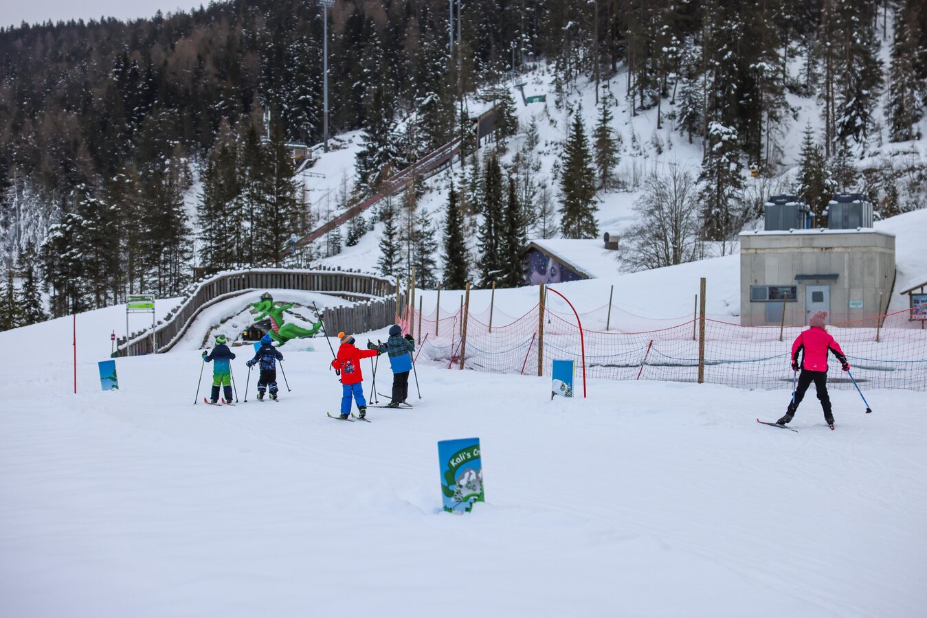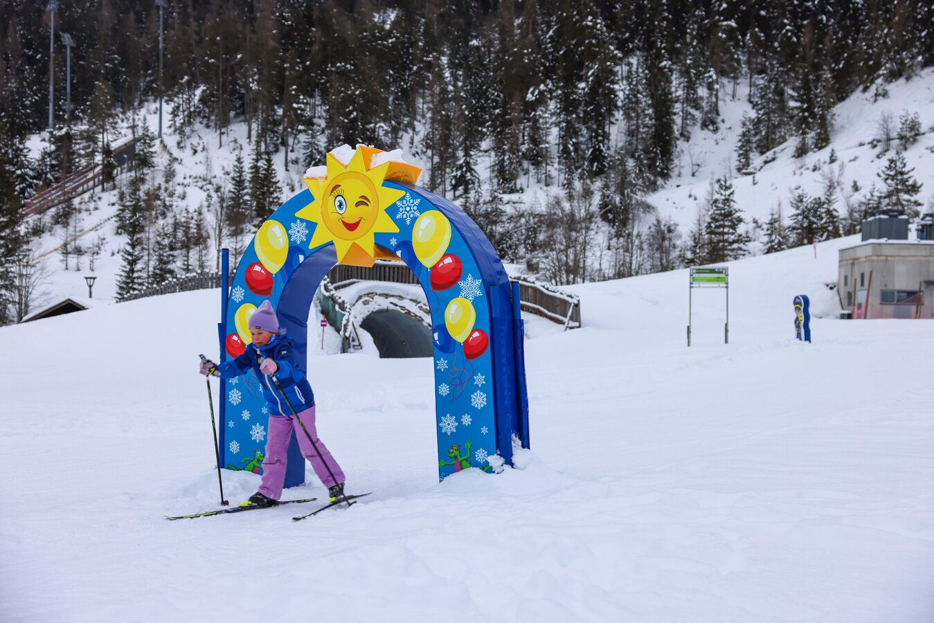 Ob für Kinder, Erwachsene oder junggebliebene Abenteurer – der Parcours bietet Herausforderungen für jedes Können. Vom Slalom und der rasanten Wellenbahn, über Torbögen und Slalom-Stangen, bis hin zu spannenden Steilkurven und einer Sprungschanze – hier gibt es jede Menge Action und Spaß! Ganz nebenbei verbesserst Du Deine Motorik und feilst an Deiner Langlauf-Technik.