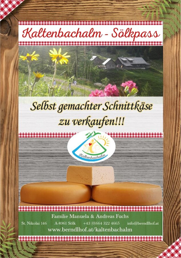 Die Kaltenbachalm liegt auf etwa 1600m am Fuße des Sölkpasses, sowie der 3 Kaltenbachseen und ist Ausgangspunkt zahlreicher Wanderziele für die ganze Familie. Wir (Familie Fuchs Manuela und Andreas) bewirtschaften die Kaltenbachalm tratitionell landwirtschaftlich während der Sommermonate (Mitte Juni bis Mitte September)