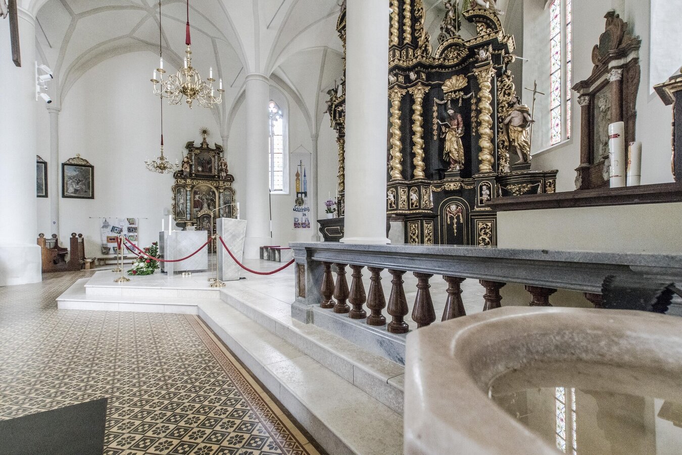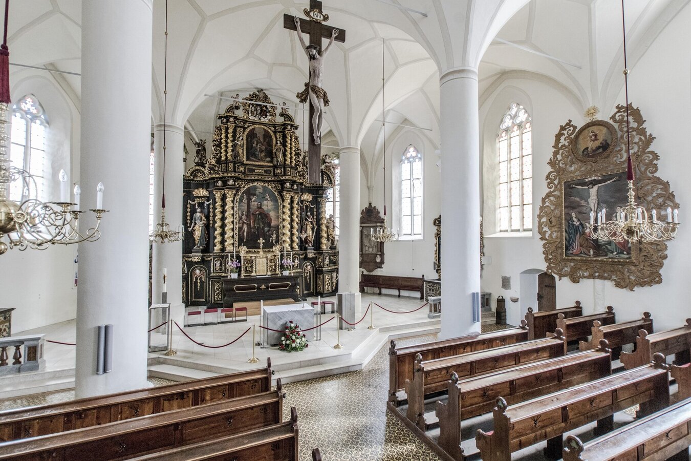 Die Stadtpfarrkirche ist im Kern spätgotisch und erhielt durch einen umfassenden Umbau in den Jahren 1522 bis 1532 ihre heutige Gestalt als dreischiffige, fünfjochige Hallenkirche. Der Turm trägt seit 1832 einen Zwiebelhelm, der nach Brand 1937 wieder originalgetreu hergestellt wurde.