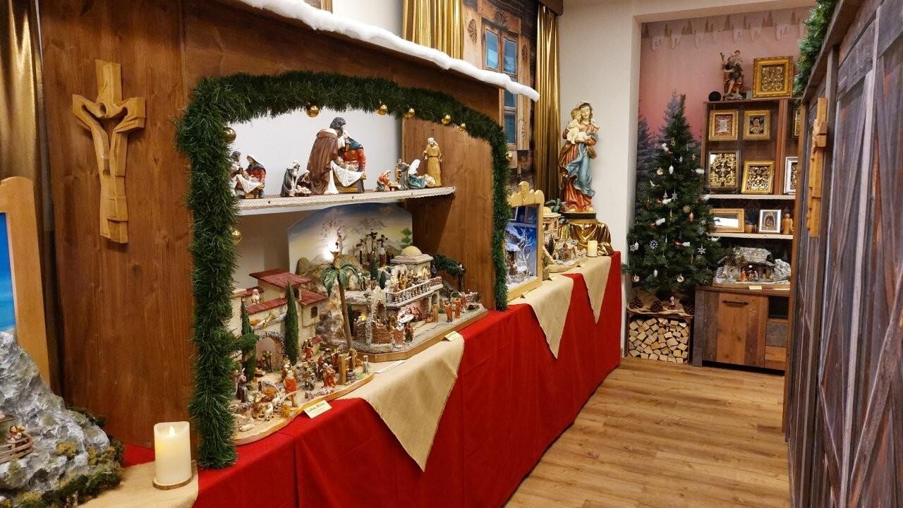 Hier sind über 80 Krippen, sowie eine große bewegliche Krippe und wertvolle exquisite Kloster- und Schnitzarbeiten zu besichtigen. In den Vitrinen gibt es umfangreiches Krippenzubehör und Krippenfiguren zu bestaunen und zu erwerben. In angenehmer Atmosphäre können Sie sich im Aufenthaltsraum bei Kaffee und Getränken eine wohltuende Pause gönnen.