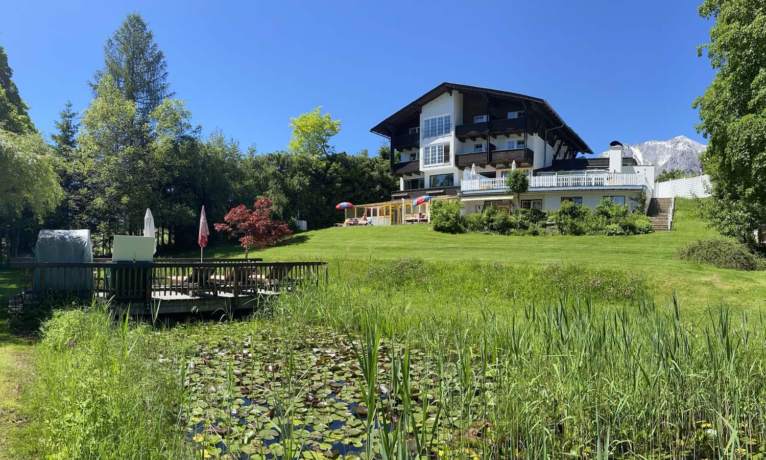 14 komfortable Zimmer, Panoramahallenbad (9m x 5m), Sauna, Dampfbad-Tepidarium & Infrarotkabine; Massage; Im Wellnessbereich und im Garten (Liegewiese) FKK/Naturismus! Geräumiger Gastraum, elegant eingerichteter Wintergarten, große Südterrasse mit Grillplatz und Rosenpavillon; 2000m² Liegewiese mit Biotop, Diele, Skiraum, Weinkeller mit ausgesuchten österreichischen Qualitätsweinen.