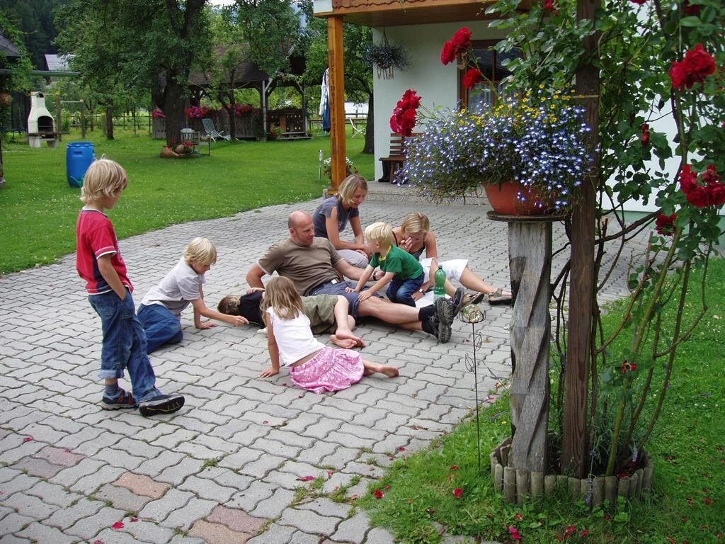 Entspannung im angeschlossenen Hofbereich. Unser Spieleparadies lädt auf über 1000m² für Alt und Jung zum Spielen ein. Egal ob ein Tischtennistisch, Dart, Basketball, eine Rutsche, ein Karussell, ein Rasendomino, eine Sandkiste oder ein Obst- und Kräutergarten – hier ist wirklich für jeden etwas Passendes dabei! Auch unser Grillpavillon darfst Du gerne nutzen – ein Geheimtipp an lauen Sommerabenden!