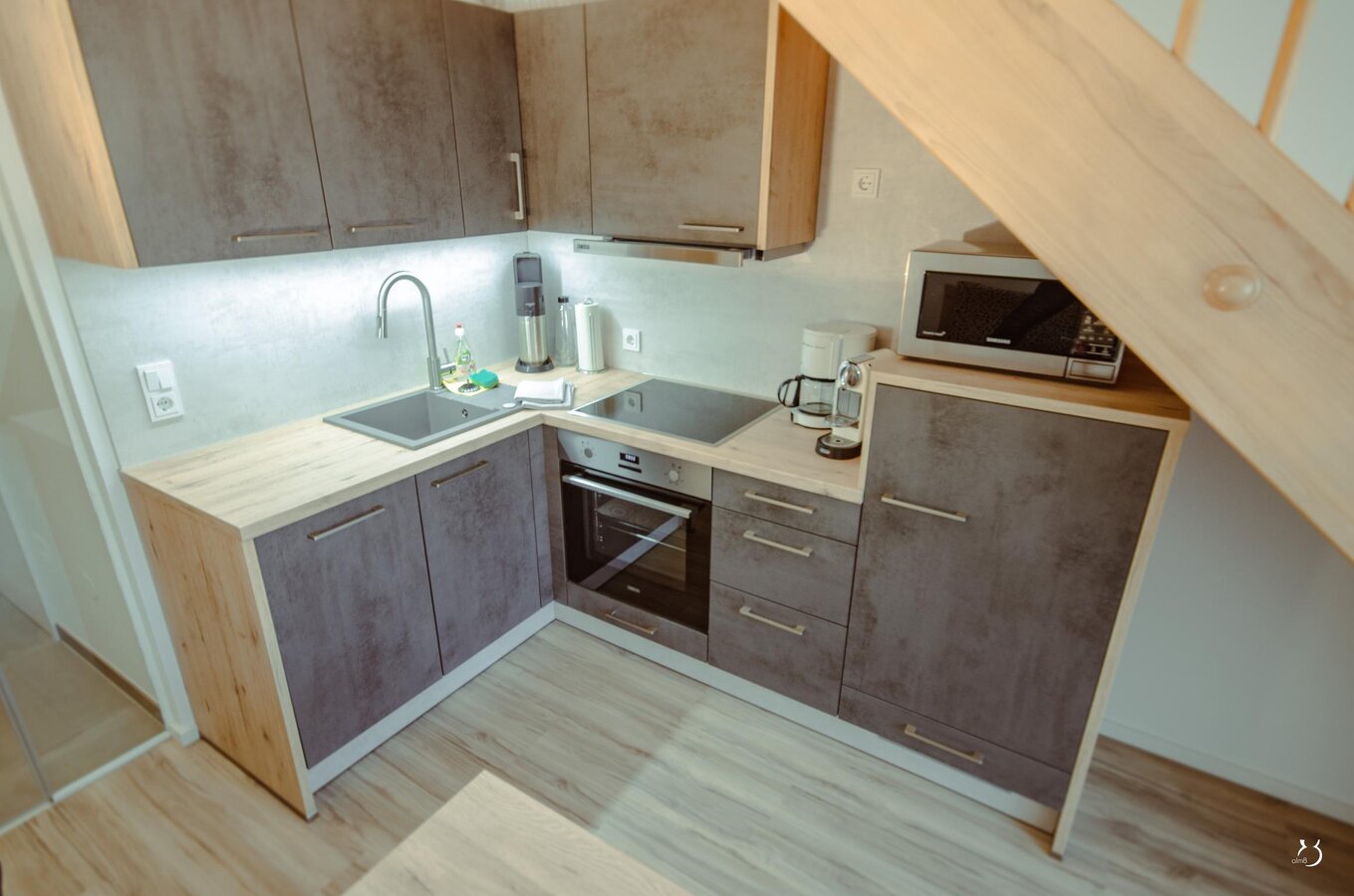 Moderne Ferienwohnung direkt auf der Planneralm. 50 m zur Liftstation. Sehr komfortabel ausgestattet, 42m², Vorraum, Du/WC, Wohnraum m. vollständiger Küche, Essecke und Couch, sowie 2-Bettzimmer im Obergeschoß.