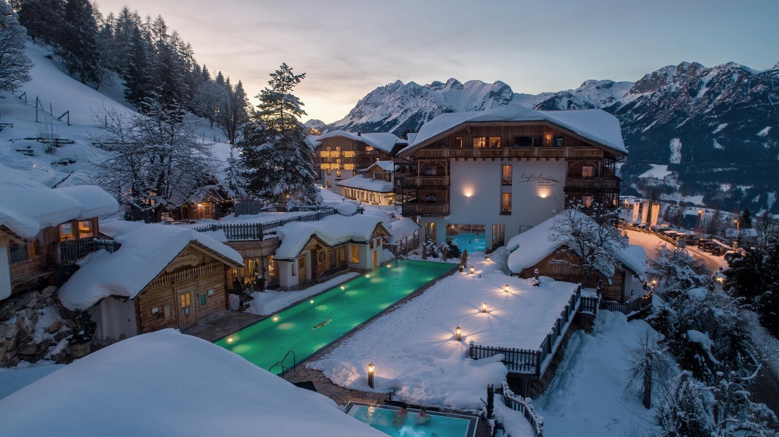 - ganzjährig beheiztem Olympia-Sportschwimmbecken und Panorama Schwebe-Whirlpool