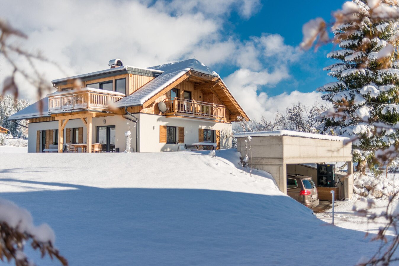 Mobilität: Skibus-Haltestelle in unmittelbarer Nähe; inklusive Parkplatz und 1 Carport-Stellplätzen pro Wohnung.