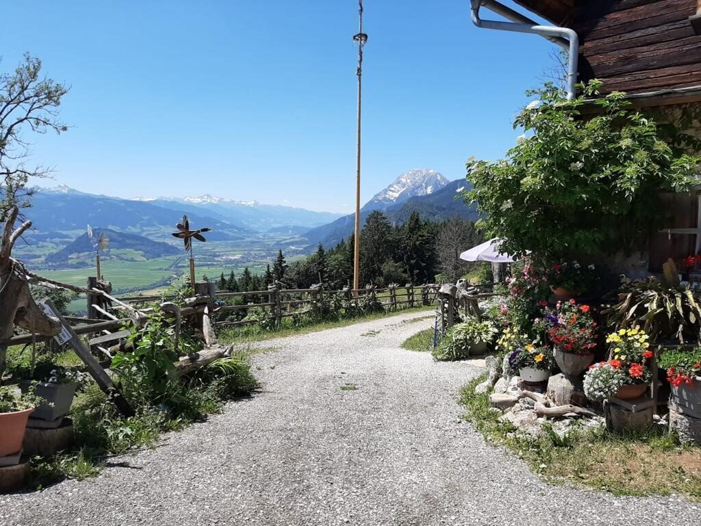 Weit über den Dächern von Wörschach liegt die urige Oberkogler-Alm. Ob draußen im heimeligen Gastgarten oder in der gemütlichen Stube mit Kachelofen - fein sitzen ist es da und dort. Die Hütte ist mit dem Auto gut erreichbar. Oder du wählst die sportliche Variante mit einer Wanderung durch die wildromantische Wörschachklamm. Nicht weit von der Hütte befindet sich ein Aussichtsturm, welcher über einen schön angelegten Alpengarten zu Fuß erreichbar ist. Ideal also um die Hüttenkalorien von Krapfen, Kasnocken & Co wieder zu verbrennen.