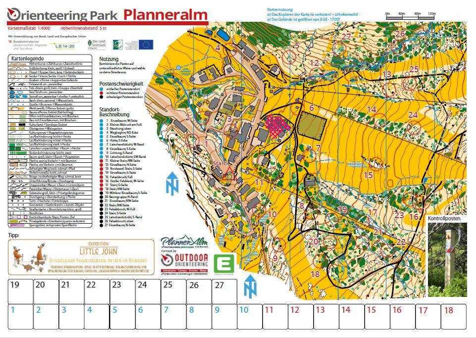 Für Erwachsene stehen verschiedene Schwierigkeitsgrade zur Auswahl. Kinder bekommen eine eigene Schatzkarte mit leicht erreichbaren Kontrollpunkten. Bei jedem gefundenen Posten einfach das passende Feld lochen.