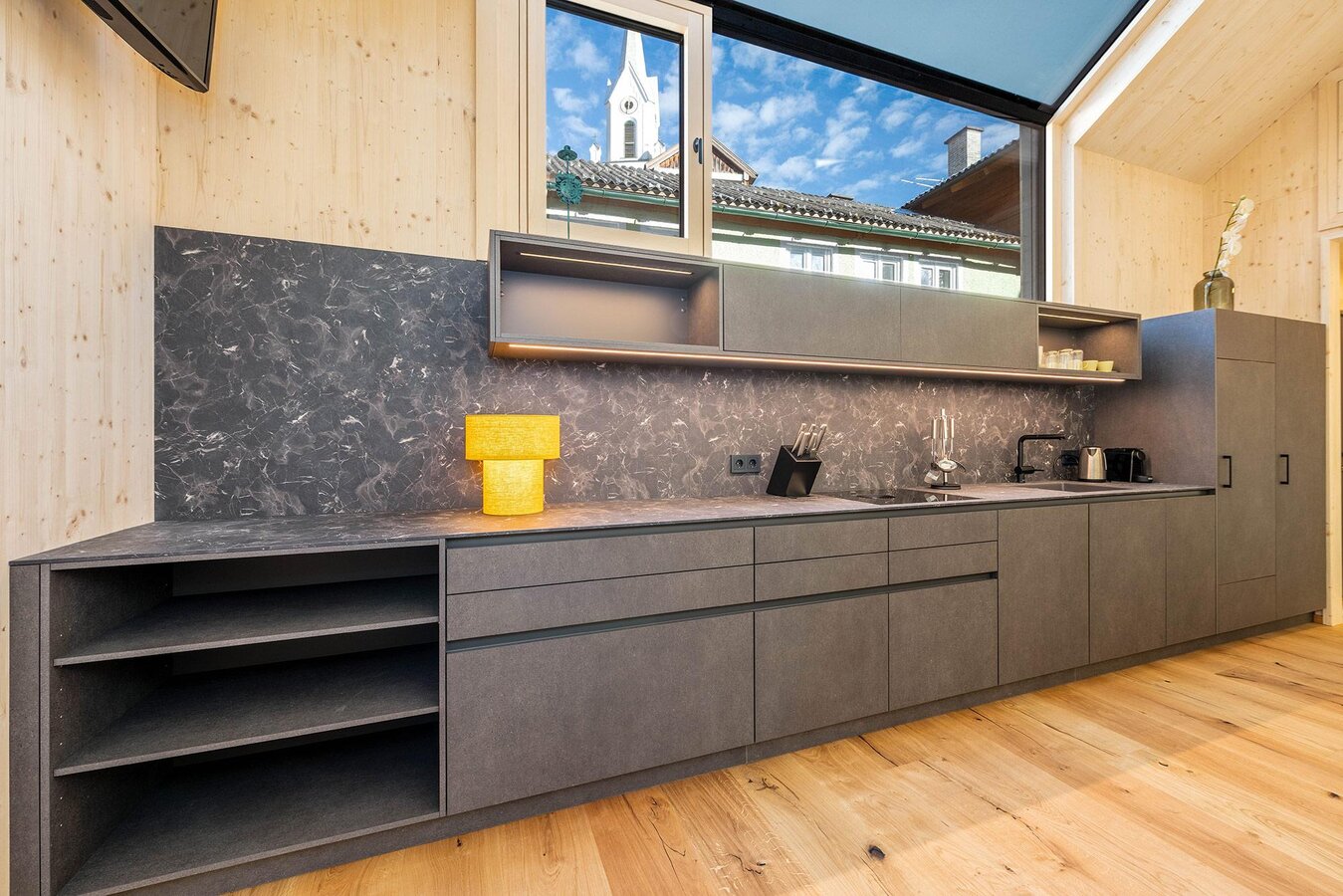 Panorama 198 – Schladming Tiny Living ist ein exklusives Hideaway für alle, die Design, Komfort und absolute Zentrumslage schätzen. Mitten in Schladming, direkt an der Talbachgasse, wohnen Sie urban und dennoch ruhig – mit einem beeindruckenden Panoramafenster und direktem Blick auf den evangelischen Kirchturm von Schladming.