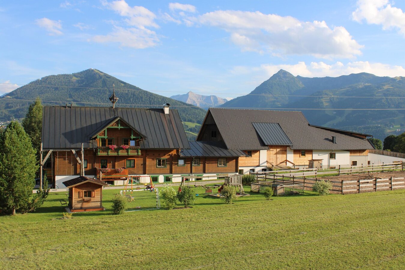 Willkommen bei der Pension Wagnerhof in Pichl bei Schladming inmitten der Region Schladming-Dachstein! Auf einem sonnigen Hochplateau nähe Ramsau am Dachstein, 1100 m über dem Meer gelegen, genießen Sie von unserem Bio Bauernhof einen freien Blick auf die wunderschöne Bergwelt der Schladminger Tauern.