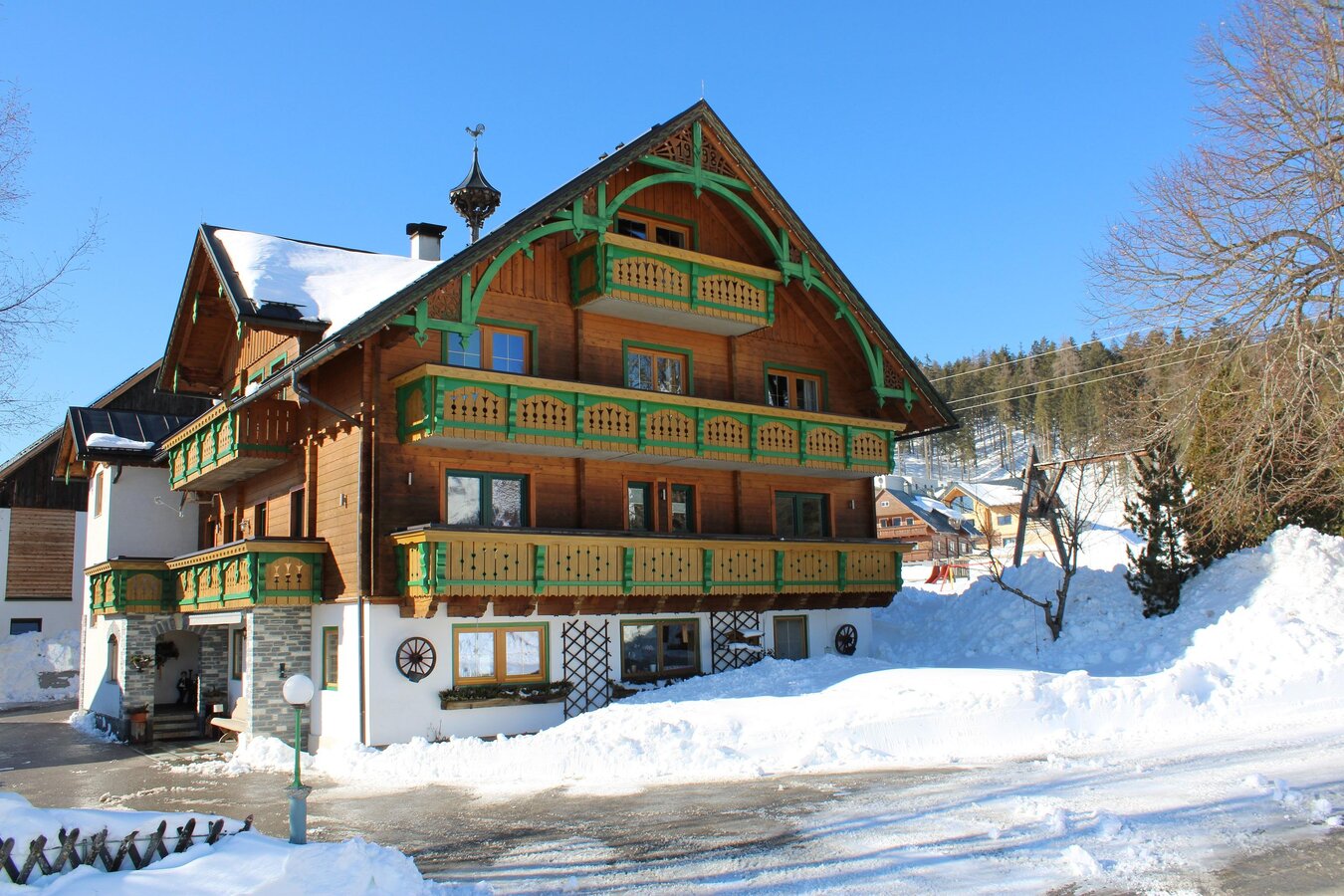 Die Pension Wagnerhof befindet sich direkt neben der Langlaufloipe mit Anschluss an das Ramsauer Loipennetz mit bis zu 220 km Loipen. Aber auch der nächstgelegene Skilift für Kinder und Anfänger, der Sonnenlift, ist in wenigen Minuten erreicht (1,2 km entfernt). Für Pistenprofis bieten der Rittisberg in Ramsau am Dachstein (3 km entfernt) oder die 4-Berge-Skischaukel Reiteralm-Hochwurzen-Planai-Hauser Kaibling (Einstieg Reiteralm 4 km entfernt) in der Region Ski Amadé die besten Bedingungen. Am besten, Sie steigen dafür mit gültigem Skipass gleich in den kostenlosen Skibus ein, der 50 m vom Haus entfernt hält. Ihre Ski- und Langlaufausrüstung deponieren Sie gerne in unserem Ski- und Schuhraum.