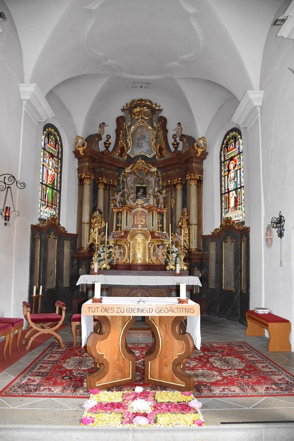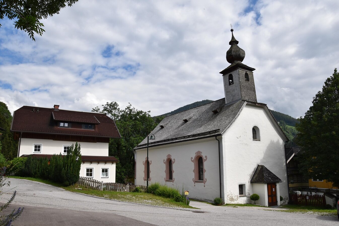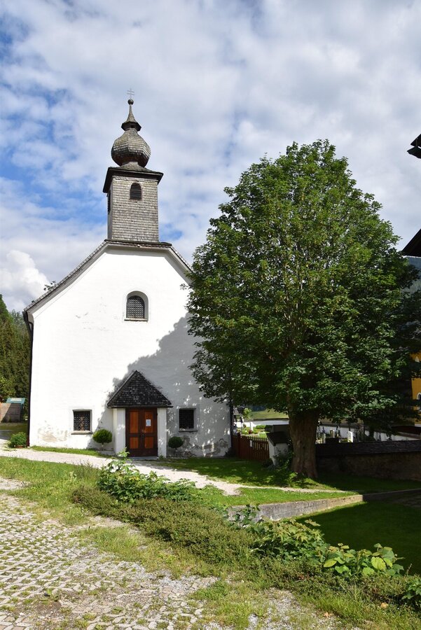 Im Jahre 1258 wurde erstmals urkundlich eine kleine Kirche beim ehemaligen Amtshof des Stiftes St. Peter (Salzburg) erwähnt. Bis 1762 war sie eine Filiale der Mutterkirche Haus, dann wurde sie Vikariat von Haus.