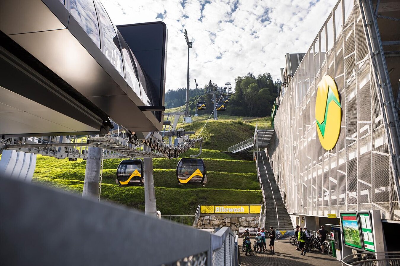 Von der Tiefgarage aus, kommst du mit einem Lift oder der Rolltreppe direkt vor die Talstation und somit Mitten ins Geschehen.