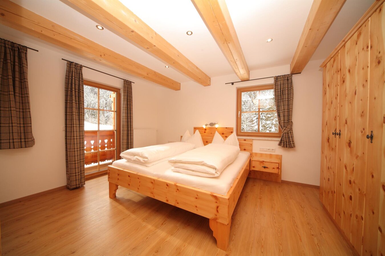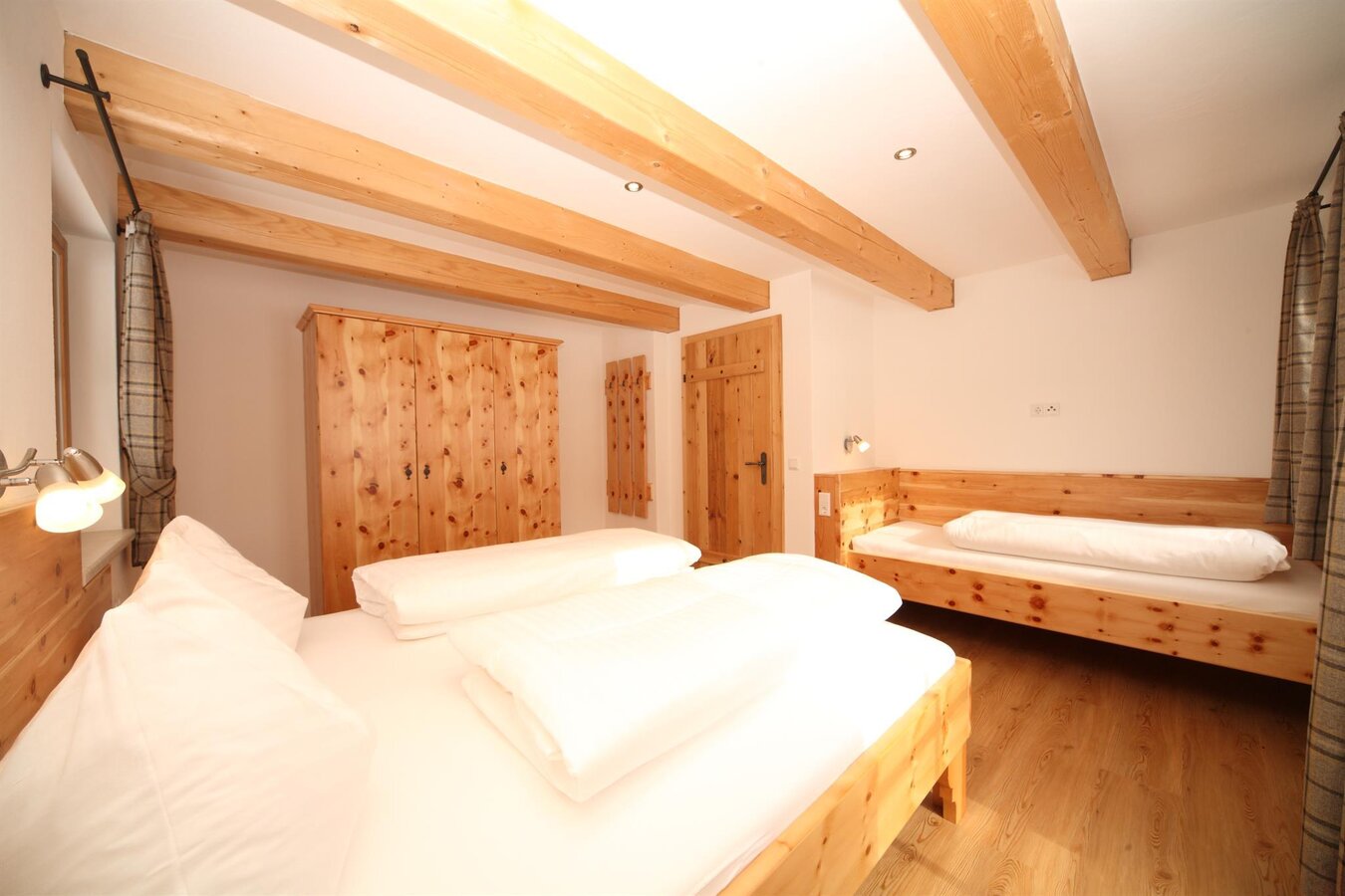 Die heimeligen Schlafzimmer sind mit Zirbenholz-Möbeln aus der Großsölk ausgestattet.