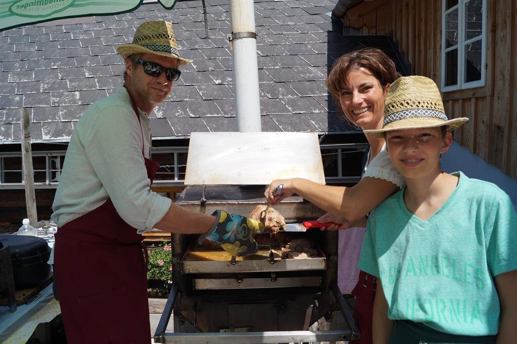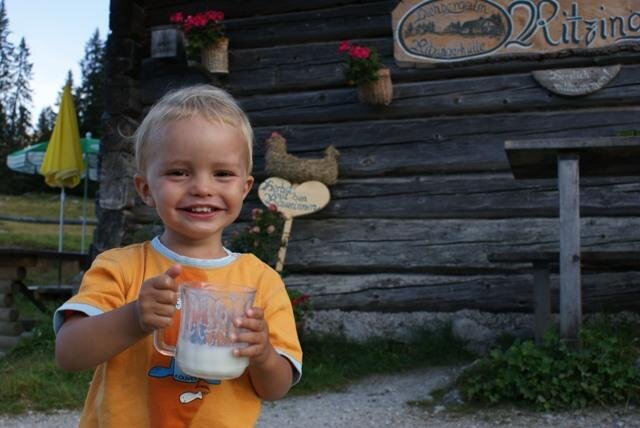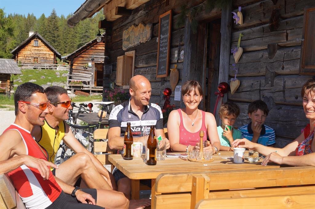 Erleben Sie den Almsommer auf der Ritzingerhütte auf 1.445m im Herzen der Urlaubsregion Schladming-Dachstein. Mit dem Fahrrad oder zu Fuß geht`s von Gröbming-Winkl oder Bad Mitterndorf stetig bergauf zur ruhig gelegenen Viehbergalm, wo Sie Energie tanken und die gewaltige Bergwelt genießen können. „A zwoa, a drei Krapfen und a Kasbröckl drauf, is auf der Ritzingerhütte allweil der Brauch“. Die süßen Krapfen – auch Bauernkrapfen genannt – mit köstlicher Marillenmarmelade dazu der Almkaffee ist kulinarischer Genuss nahe dem Himmel! Die Kühe warten schon auf das Melken – frische Milch – aus der wir köstlichen Almbutter rühren – dann gibt’s auch die Buttermilch. Und den Steirerkas machen wir selbst – von dem es heißt: Lieben oder Lassen!! Der Abschluss könnte ein Zirbenschnapserl aus eigenem Brand sein. Acht kuschelige Holzbetten mit frischer Bettwäsche in der urigen Hütte warten auf Sie! Einfach & Echt. Am Morgen genießen Sie ein köstliches Almfrühstück vor der Hütte in der aufgehenden Sonne. Die Ritzingerhütte ist der ideale Ausgangspunkt für Wanderungen auf die umliegenden Berggipfeln wie den Stoderzinken, den Hirzberg oder dem Hochmühleck oder zum Miesbodensee. Unsere Hütte bietet sich auch perfekt an für einen Zwischenstopp für Wanderer die den Dachsteinrundwanderweg bestreiten. Ein weiteres Highlight, welches von der Ritzingerhütte aus lockt ist eine Wanderung durch die Notgasse am Fuße des Stoderzinkens, im UNESCO Weltnaturerbe. Der nur für Fußgänger begehbare Steig wurde früher von Almleuten der Köhlerei und den Salzschmugglern benützt. Die beeindruckende Klamm mit bis zu 60m hohen Felswänden und den historischen Felsritzbildern bieten dem Besuch eine Aura des geheimnisvollen und Mystischen. Jährlich veranstalten wir Anfang Juli das traditionelle Almfest auf der Viehbergalm. Für Gruppen bietet das Ennstaler Almdiplom ein unvergessliches Erlebnis. Genießen Sie den Almsommer bei uns auf der Ritzingerhütte. Wir freuen uns Sie bei uns auf der Alm zu begrüßen. Marianne Gruber