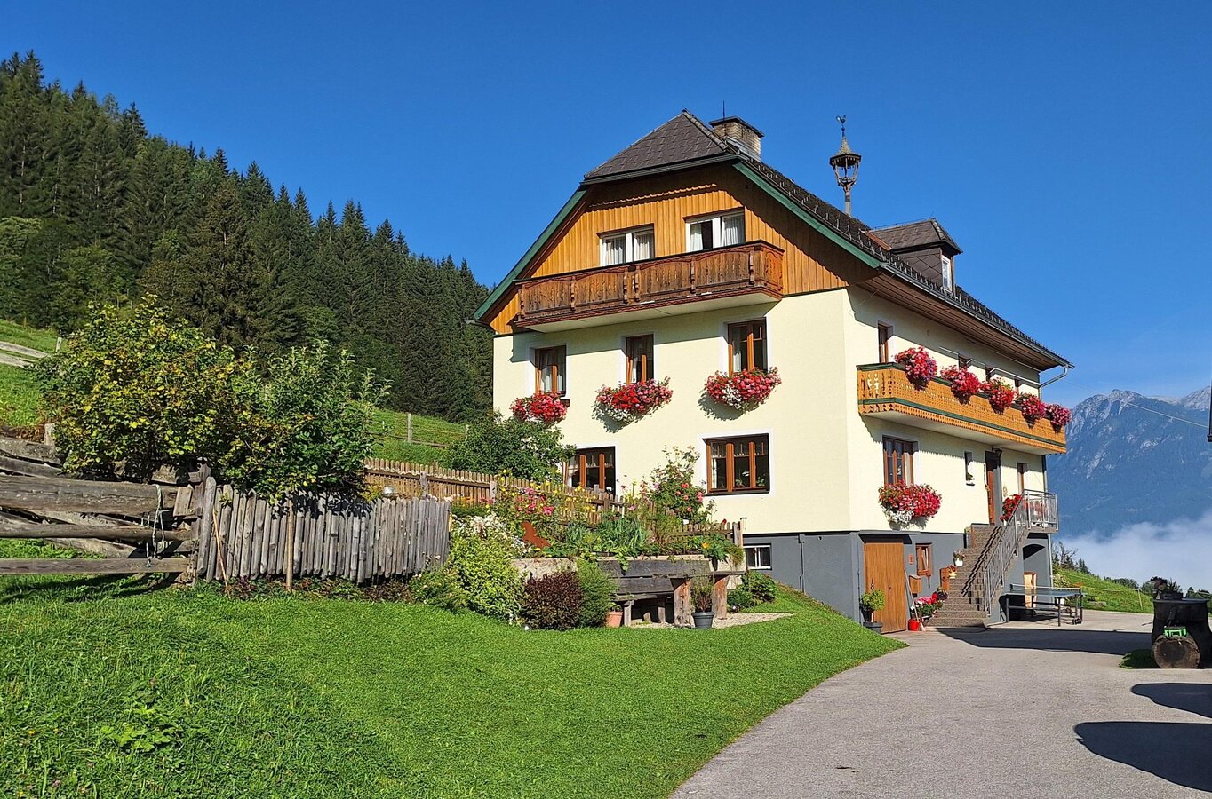 Auf unserem 1000 m hoch gelegenen Bauernhof an der Panoramastraße Seewigtal-Bodensee können Sie unsere schöne Umgebung und die gute Bergluft genießen. Unsere Komfortzimmer sind mit Badezimmer (Dusche/WC), Balkon und Sat-TV ausgestattet. Wir haben auch einen gemütlichen Aufenthaltsraum mit WLAN, ein erweitertes Frühstück sorgt für einen gestärkten Start in den Tag. Unser Hof befindet sich in ruhiger Lage und ist idealer Ausgangspunkt für Wanderungen. Ein Spielplatz für die Kleinen, Liegewiesen und Grillmöglichkeiten stehen unseren Gästen jederzeit zur Verfügung. Unsere Tiere am Hof: Kühe und Kälber, Katzen, Hasen, Enten und Hühner.